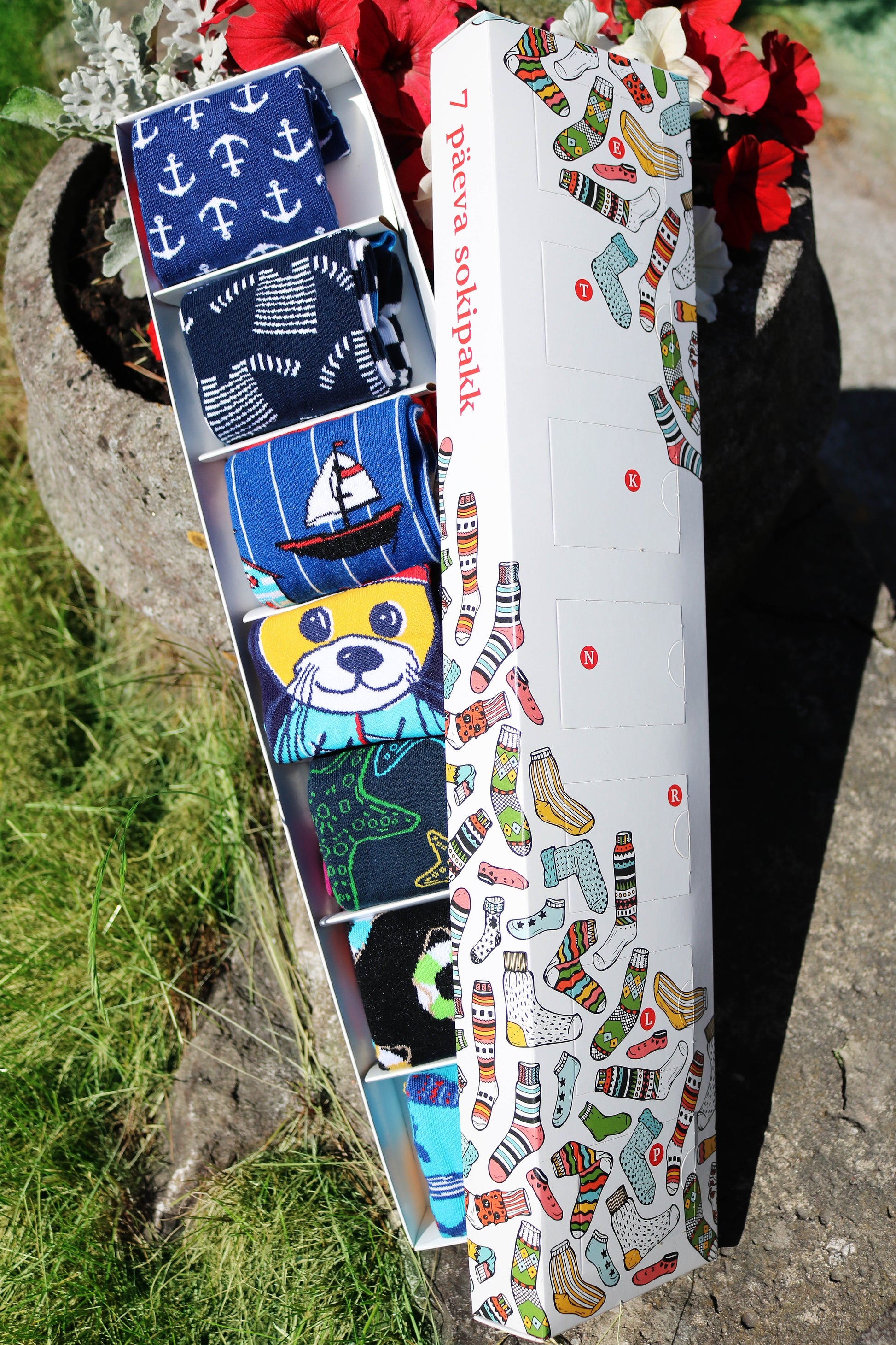 Ahoy, fellow sea friends! It's the year of sea party. And how else to celebrate it than with our marine-themed socks?! We have a lot of different pairs - with fish, anchors, lifebelts, ships, boats, lighthouses and even with pike-perch fish! We have created the perfect gift box for a real sailor and a fish friend! And this gift box is special - it contains 7 pairs of sock for each day of the week! This way you can get a new pair every day for a whole week!