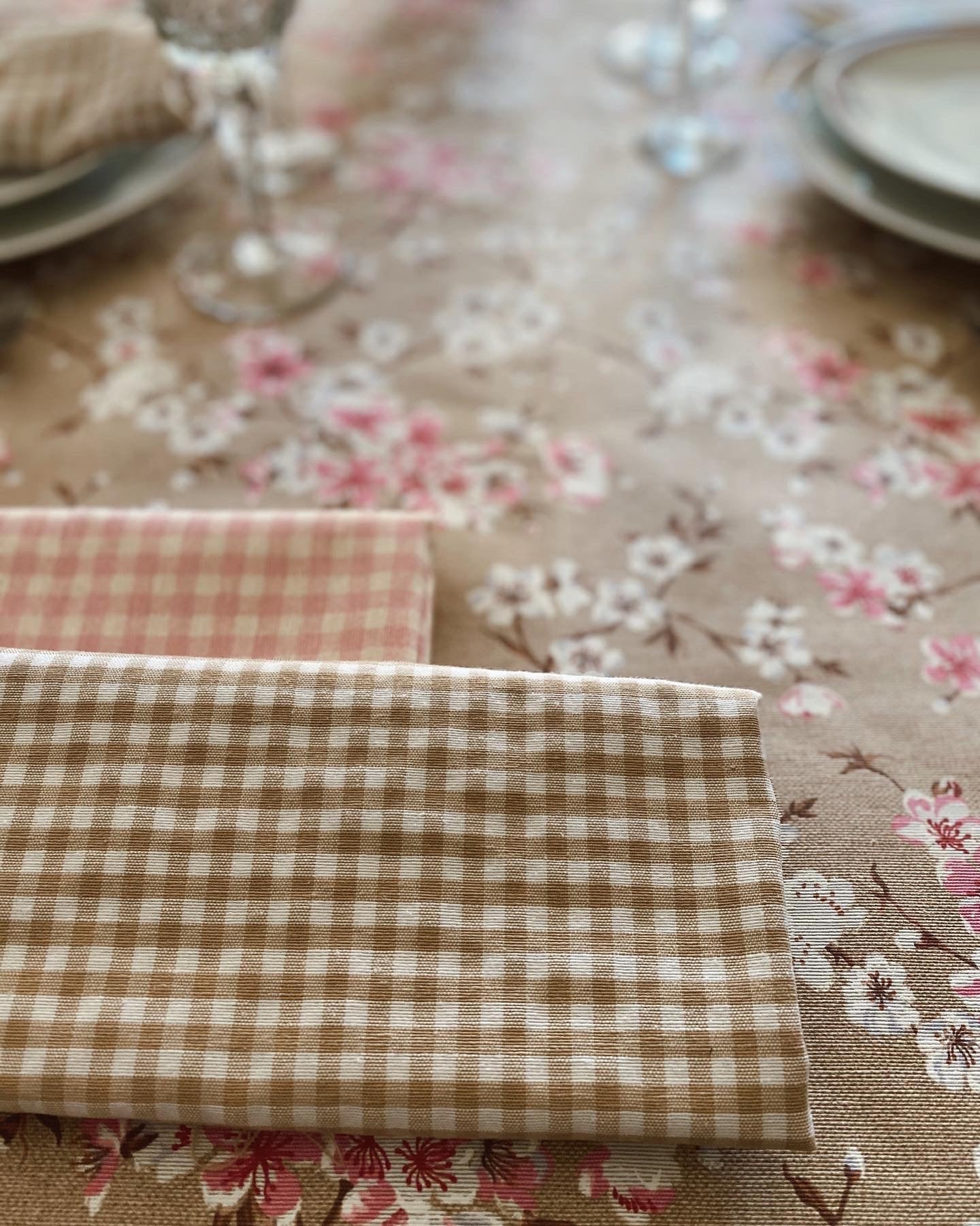 Servilletas Vichy Beige . Estas servilletas están compuestas de 100% algodón resistente y su alta calidad, hacen que sean muy suaves al tacto. Ideal para la mesa del comedor o tus juegos de manteles.