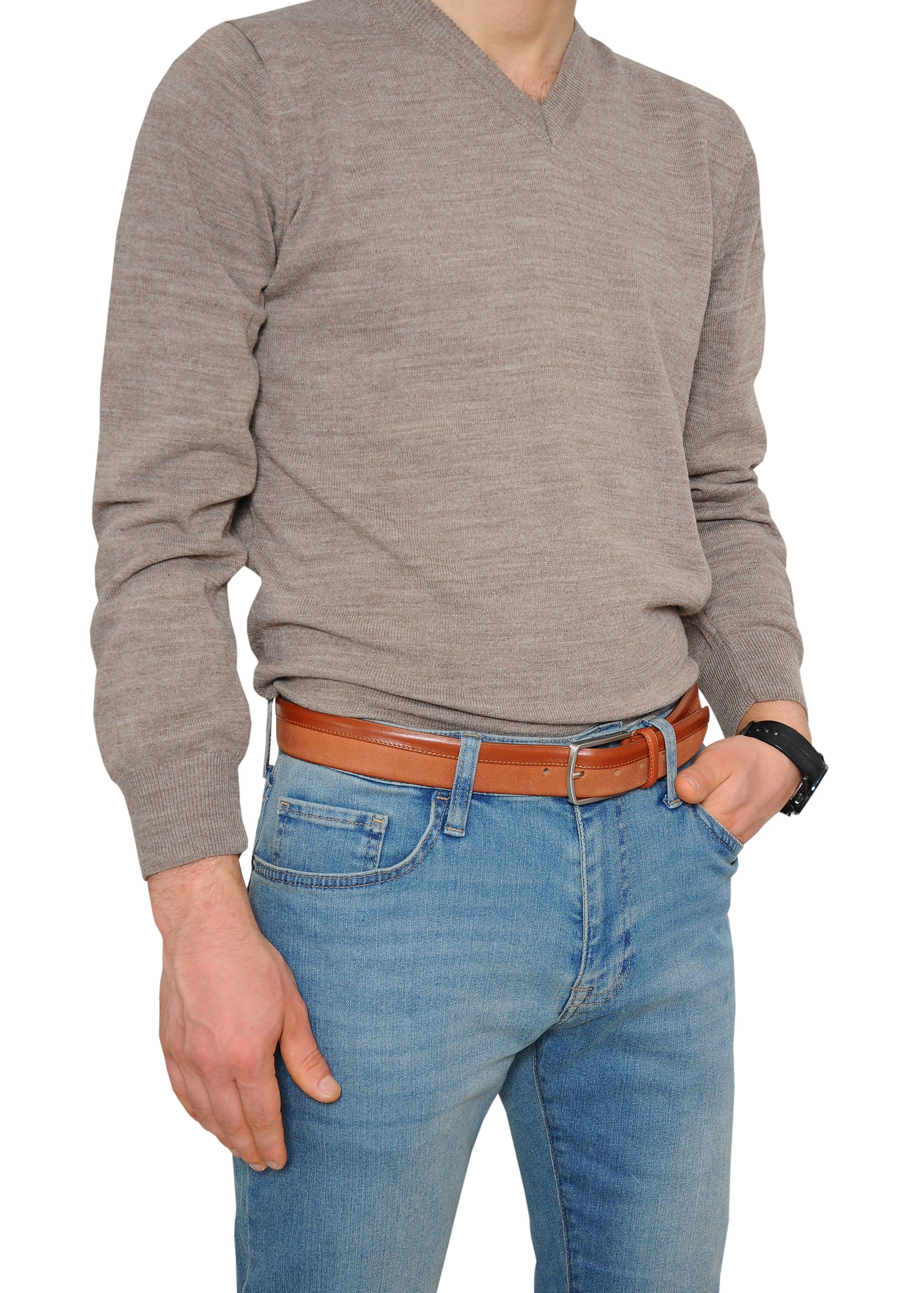 The Siene Tan Leather Men Suede Belt is a simple yet stylish accessory. Made with soft tan suede, it's versatile and can match many outfits. The belt has a silver buckle that's easy to use, making it practical for daily wear. It's a great choice for adding a classy touch to your look, whether you're dressing up or going casual.