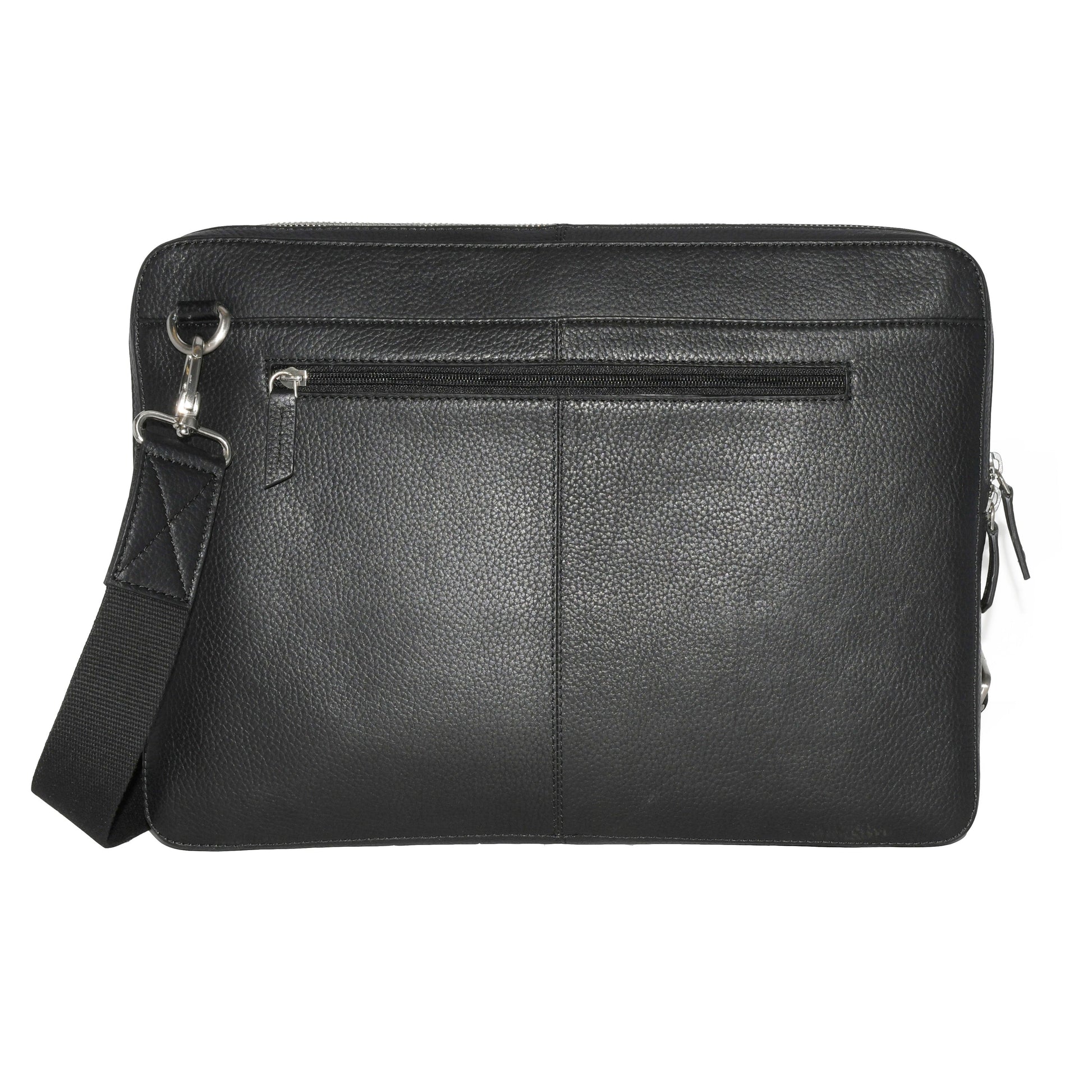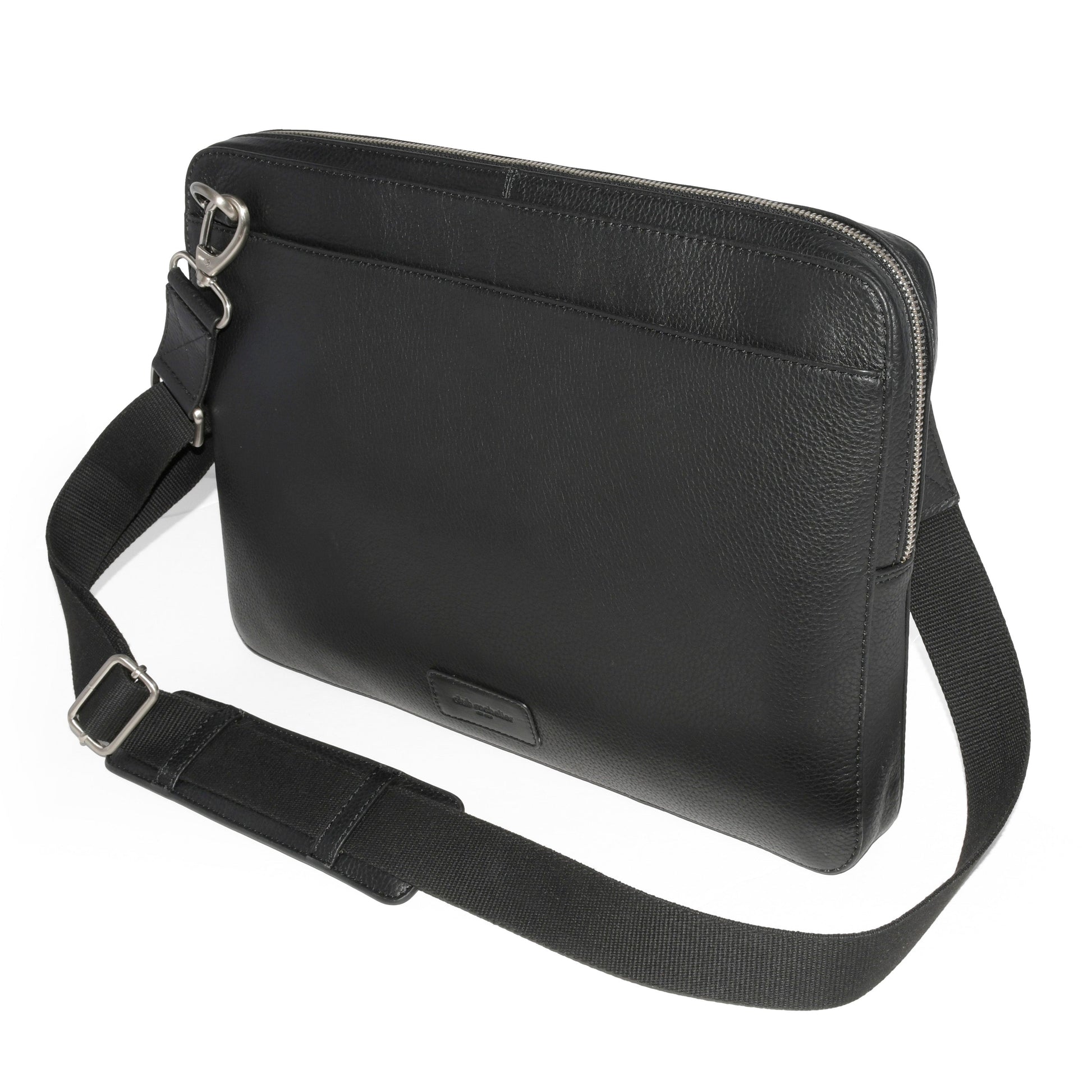 This slim and elegant large capacity, leather messenger from Club Rochelier meets all your business and travel needs. Fabricated in Genuine textured leather and boasts a large interior compartment for documents, padded laptop and Ipad compartments, two accessories pockets and an interior zipper pocket.The adjustable strap allows for crossbody or shoulder carry.