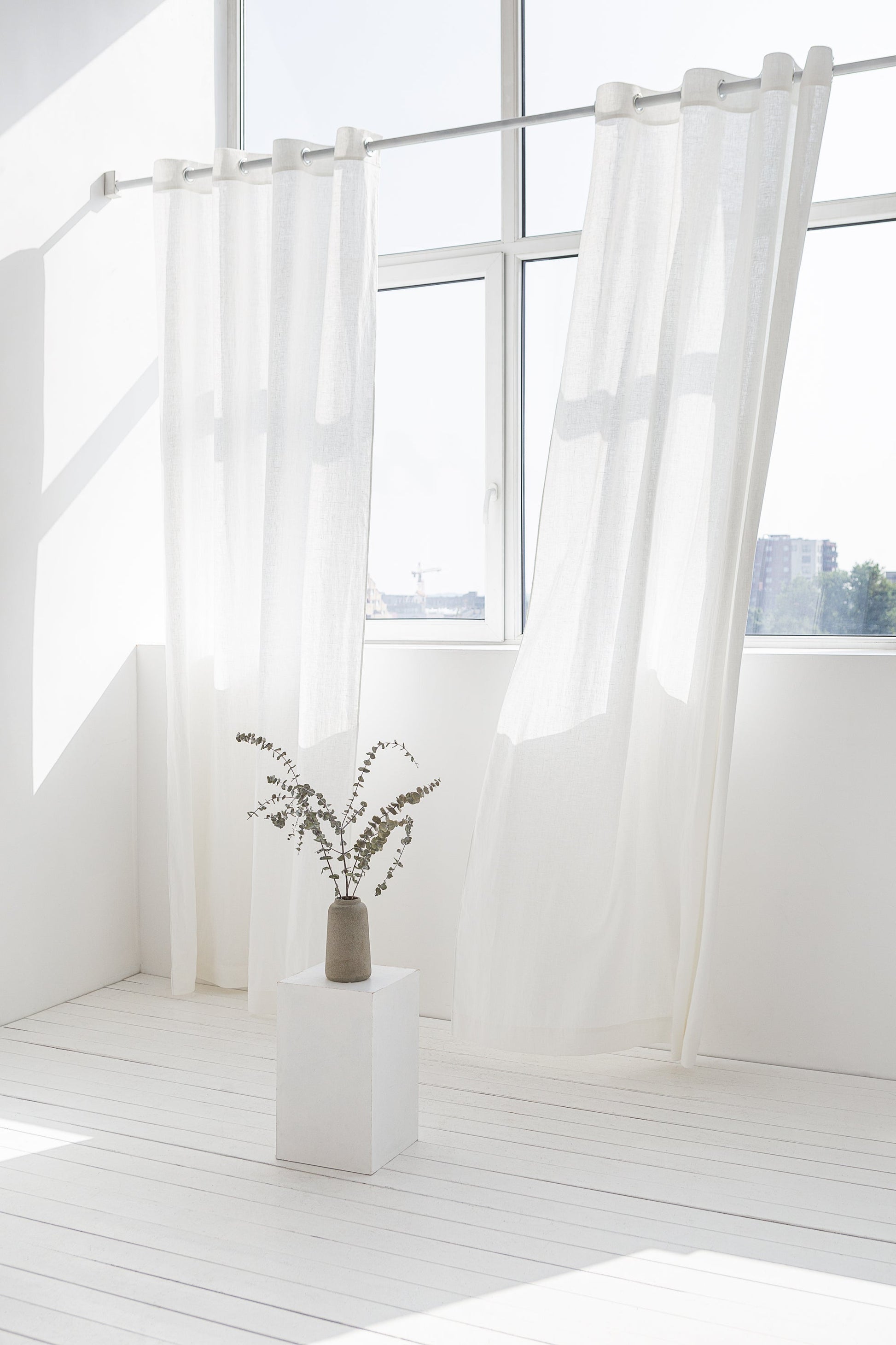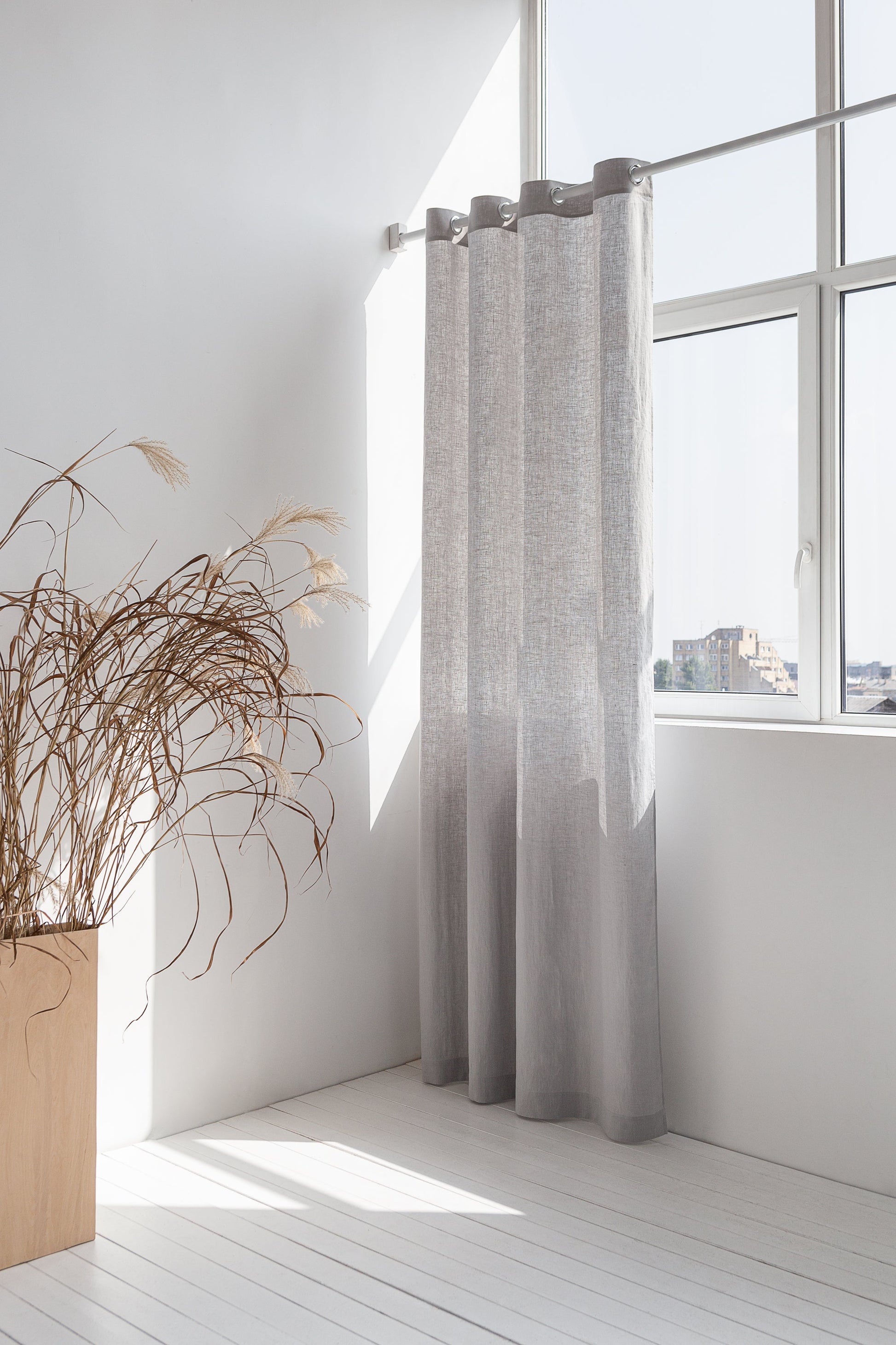 Elegant White linen curtains with grommets (rings) will create a subtle design in your room. Gorgeous but the simple and modern style will be a perfect finish for any interior. Will give you privacy and keep the light on. The curtain panel is made from 100% natural and softened European linen.