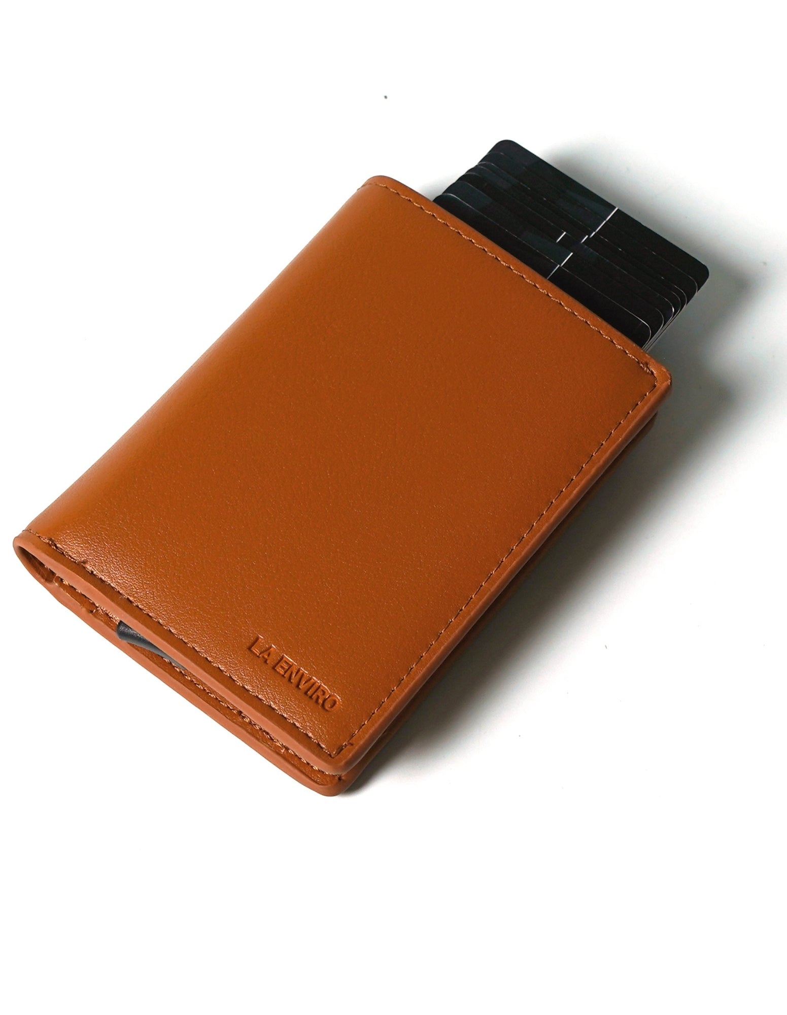 - PREMIUM VEGAN LEATHER & ALUMINIUM - Made of premium vegan leather and features an extremely subtle and timelessly stylish finish, along with a solid interior card chamber made of aluminium that is suitable for storing up to six cards.