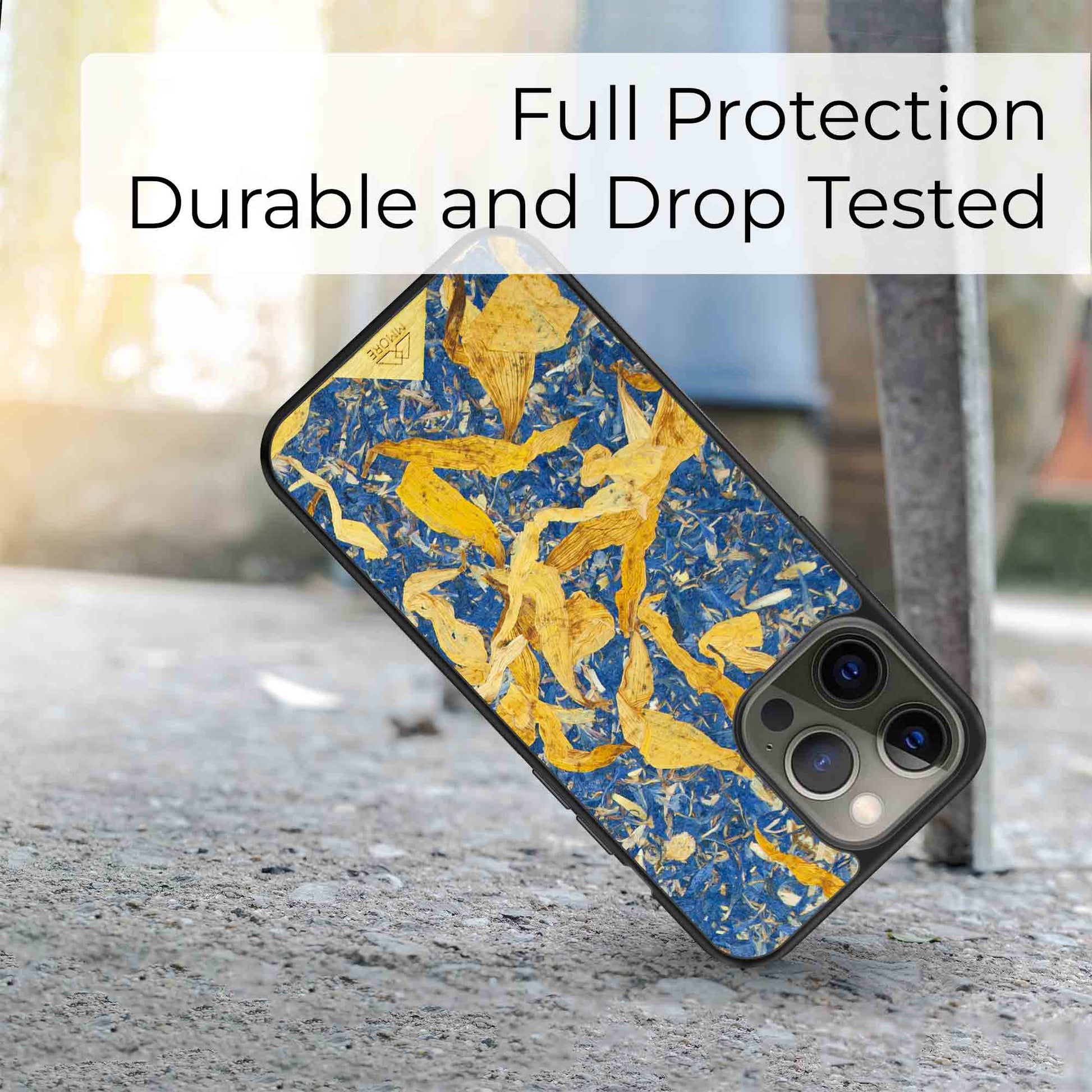 Embrace the beauty of a sun-kissed summer day with the Summer Sky Phone Case, crafted from real blue cornflower and sunflower petals. Each case is a unique piece of nature, capturing the vibrant blues of a clear sky and the warm golden hues of the sun. Handmade with care, this case is not just a stylish accessory but a reminder of the natural world at your fingertips. The carefully preserved petals are encased in a protective, eco-friendly resin, ensuring durability while maintaining their delicate beauty. With a smooth, organic texture this case brings nature closer to your everyday life.
