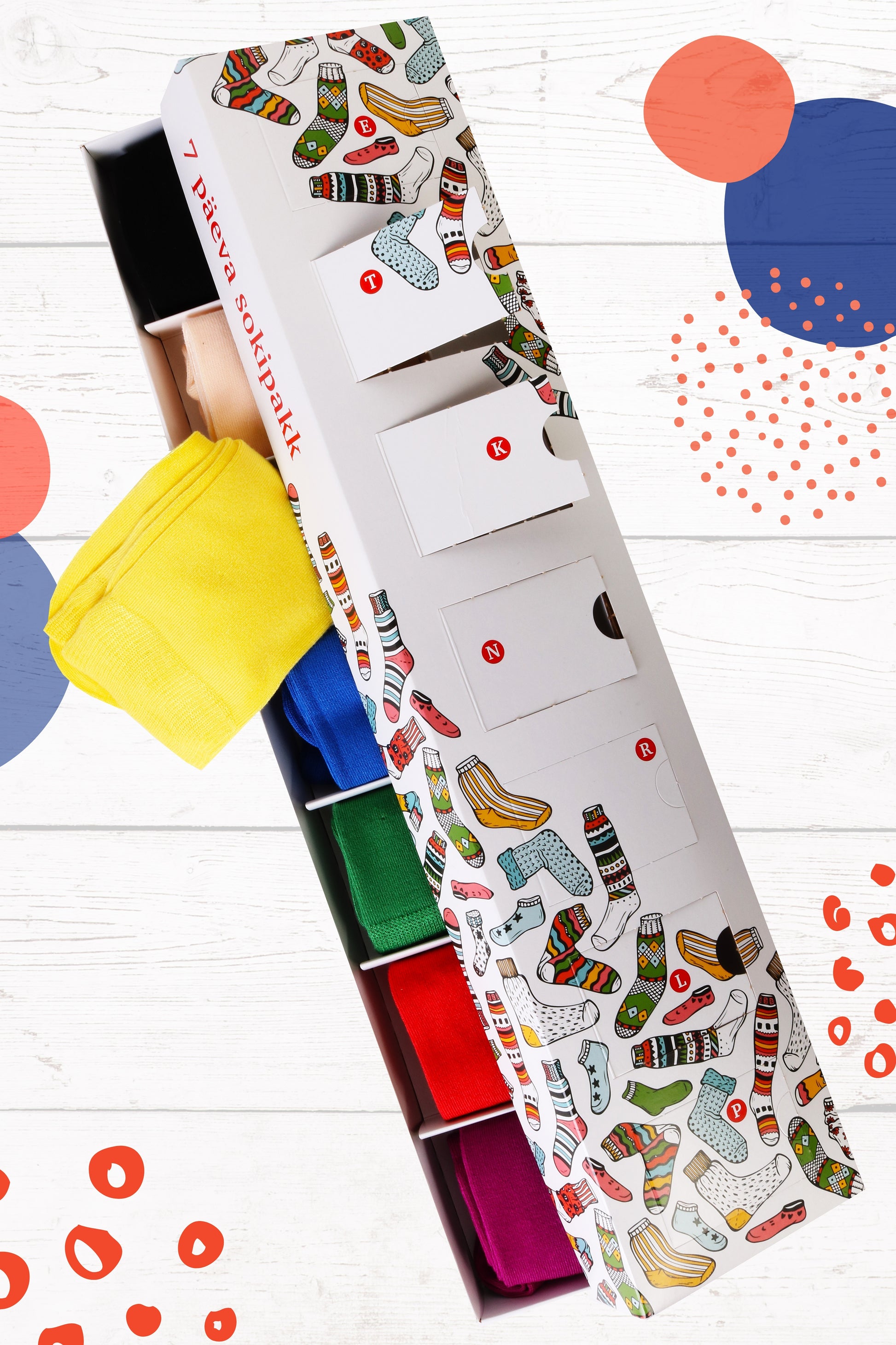 Are you looking for a practical gift? Here's an elegant gift box for you containing 7 pairs of different TAUNO socks. To look your best, you simply need a new pair of socks to match your outfit! Just open a window and you'll find a different pair of TAUNO bamboo viscose socks every day!