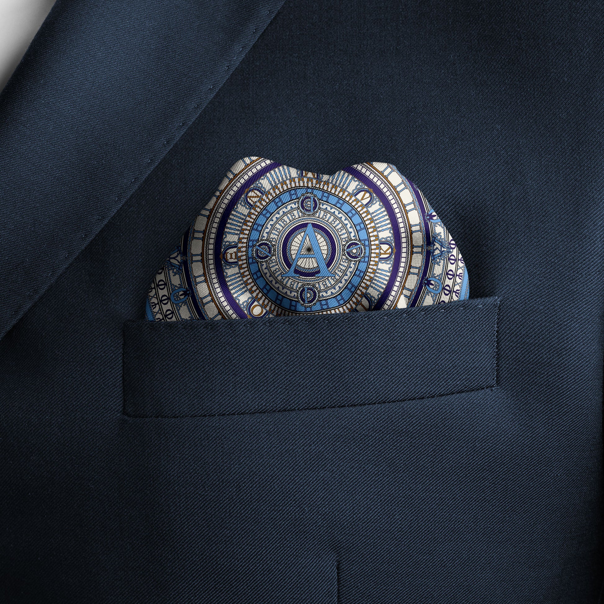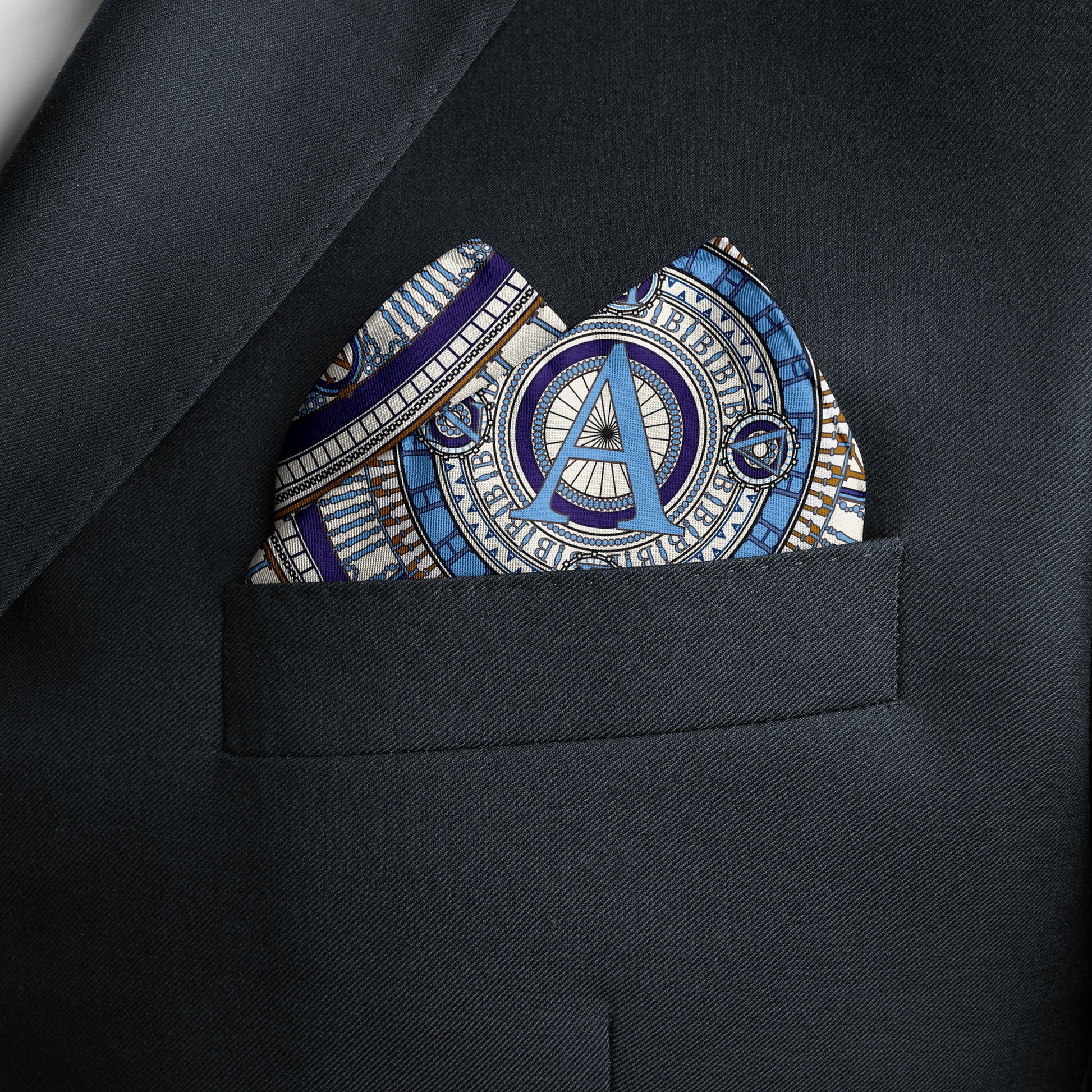 Fetolia is very much inspired by Greece, so creating a pocket square with the Greek alphabet was a challenge to spread the word: You speak Greek, you just don’t know it! Why? Because there are more than 6.000 Greek words used in English!