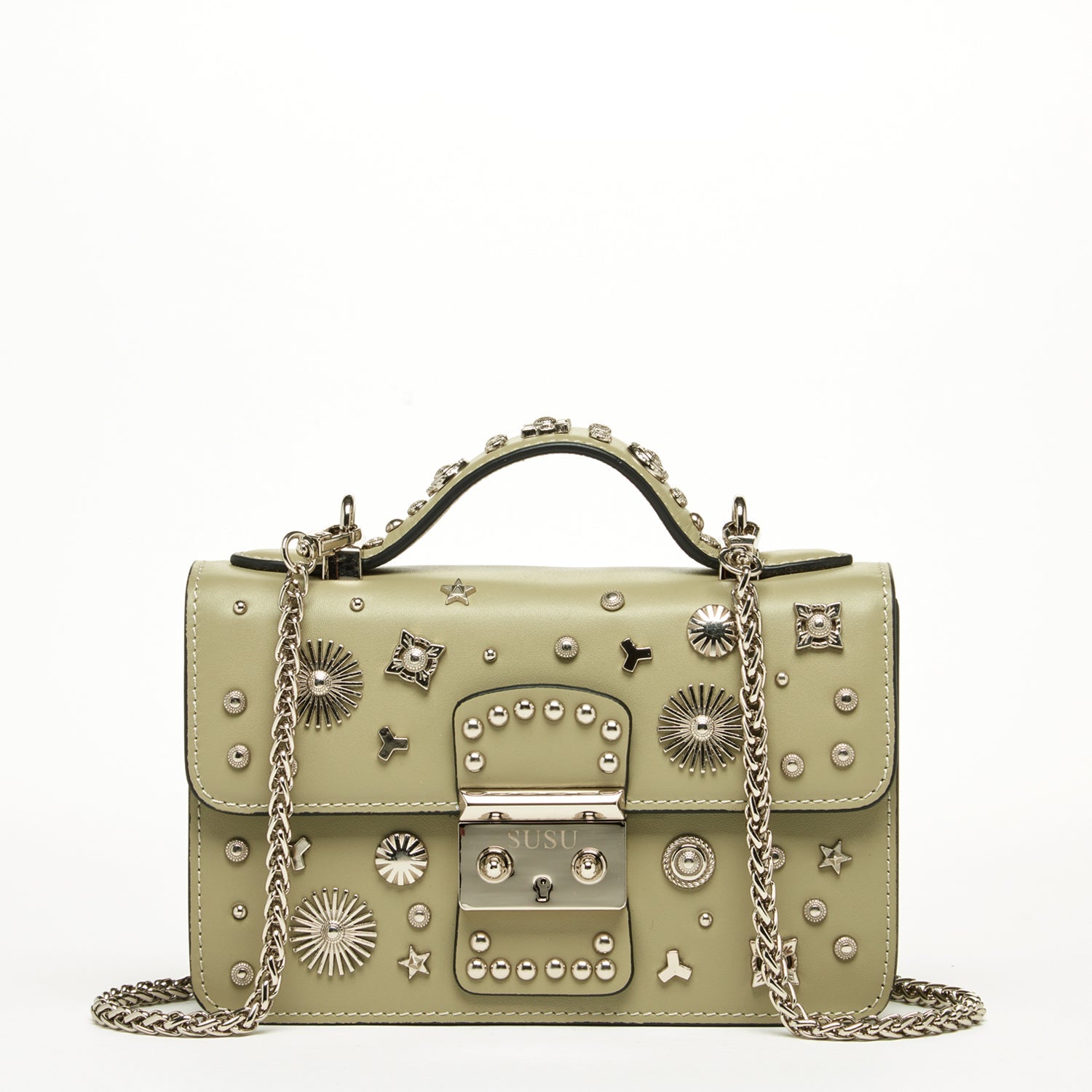 SUSU Small Leather Crossbody Bag Sage Green Purse Women's Handbag