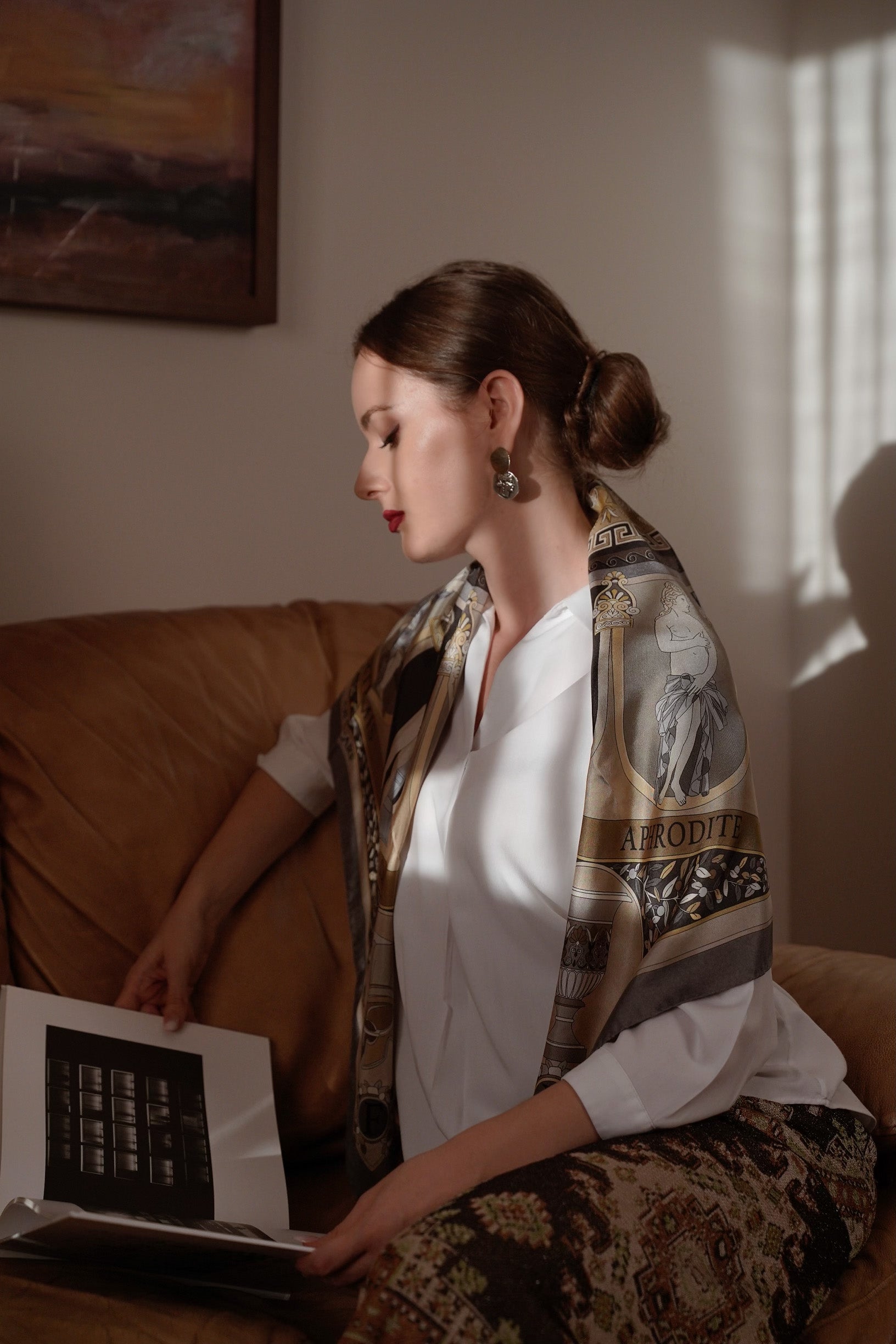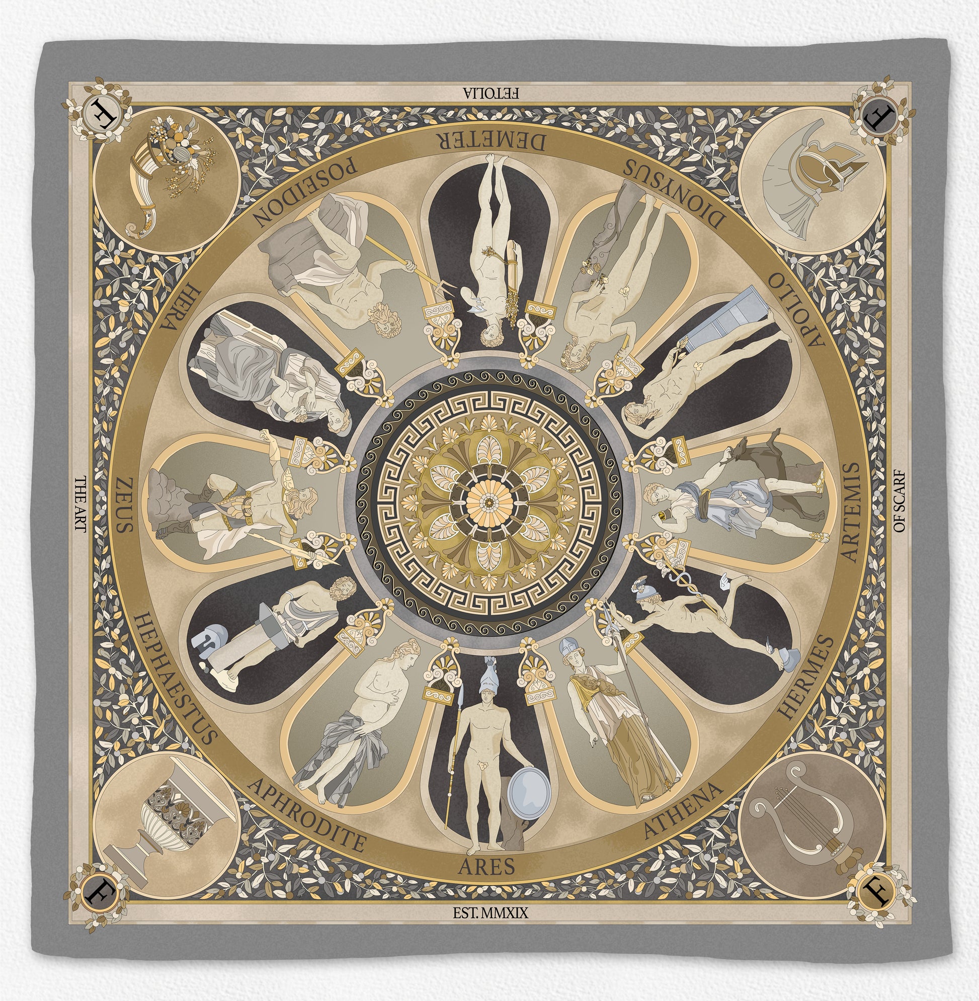 The Olympian Gods - Grey-Beige - 100% Silk Scarf