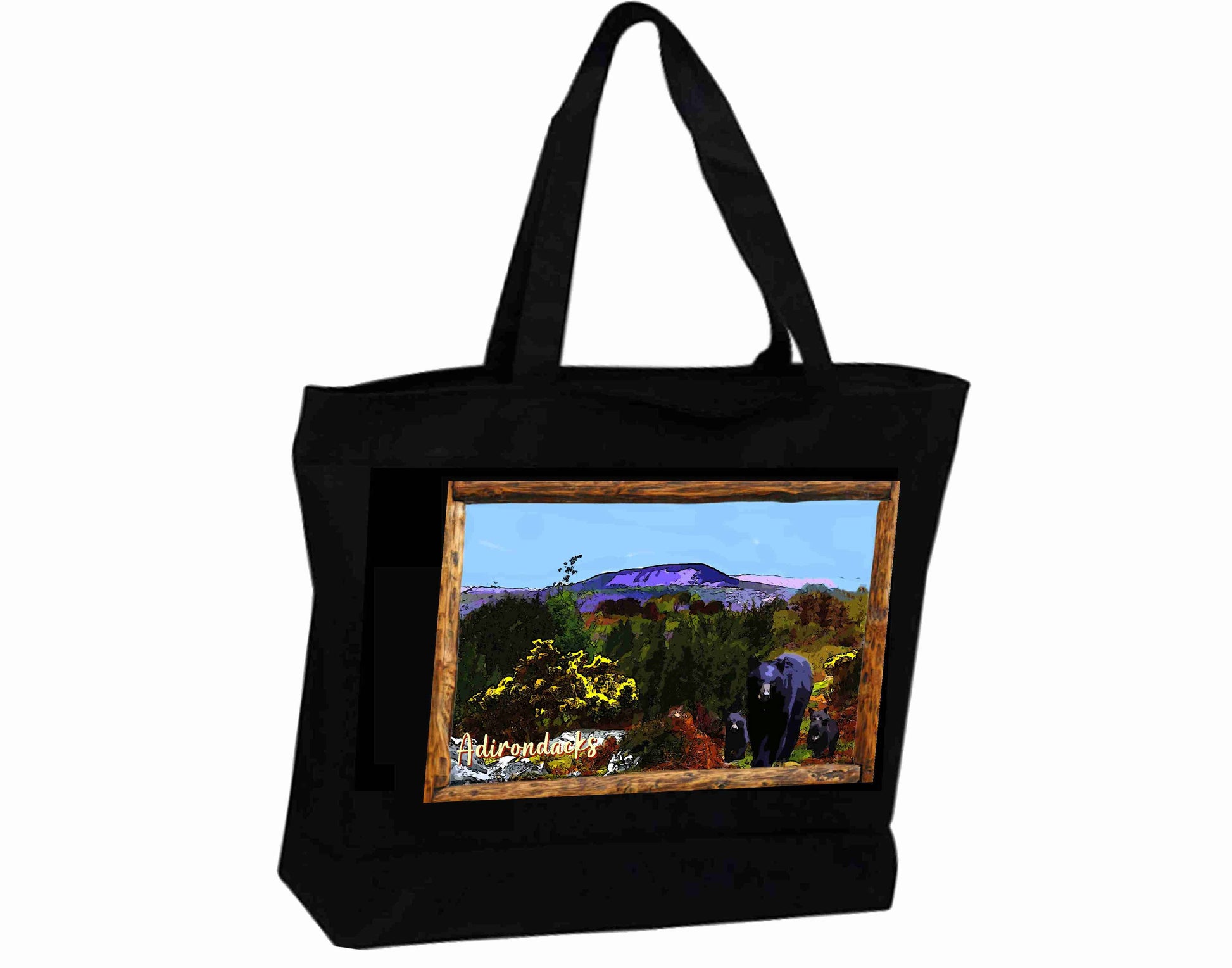 Tote Bag XL Travel Poster Adirondacks NY black bear and cubs
