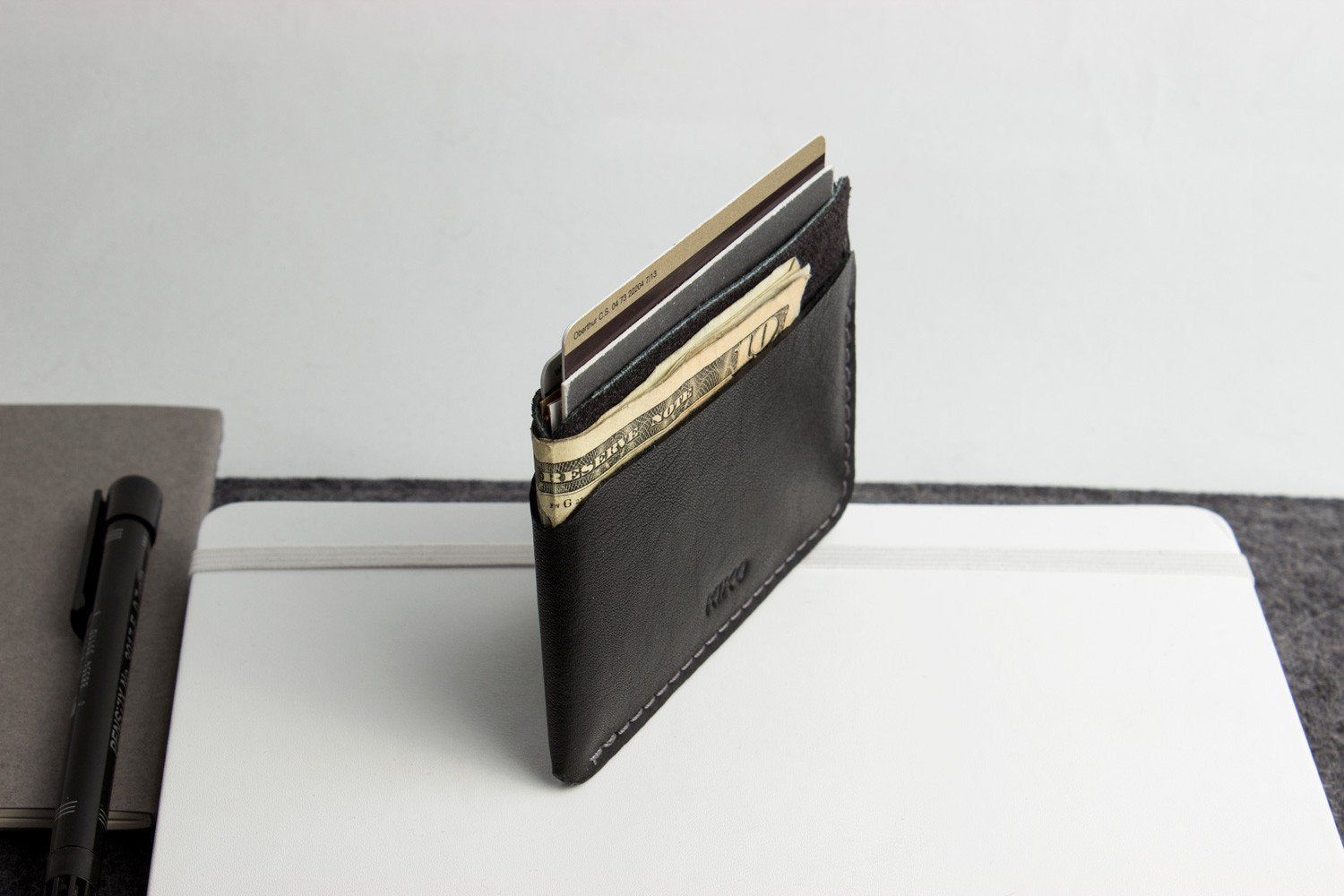 Our Triple Pocket Card Case is handcrafted with top grain cowhide leather and contrast stitching. The Case features a center pocket for folded cash and 2 side pockets for additional cards.