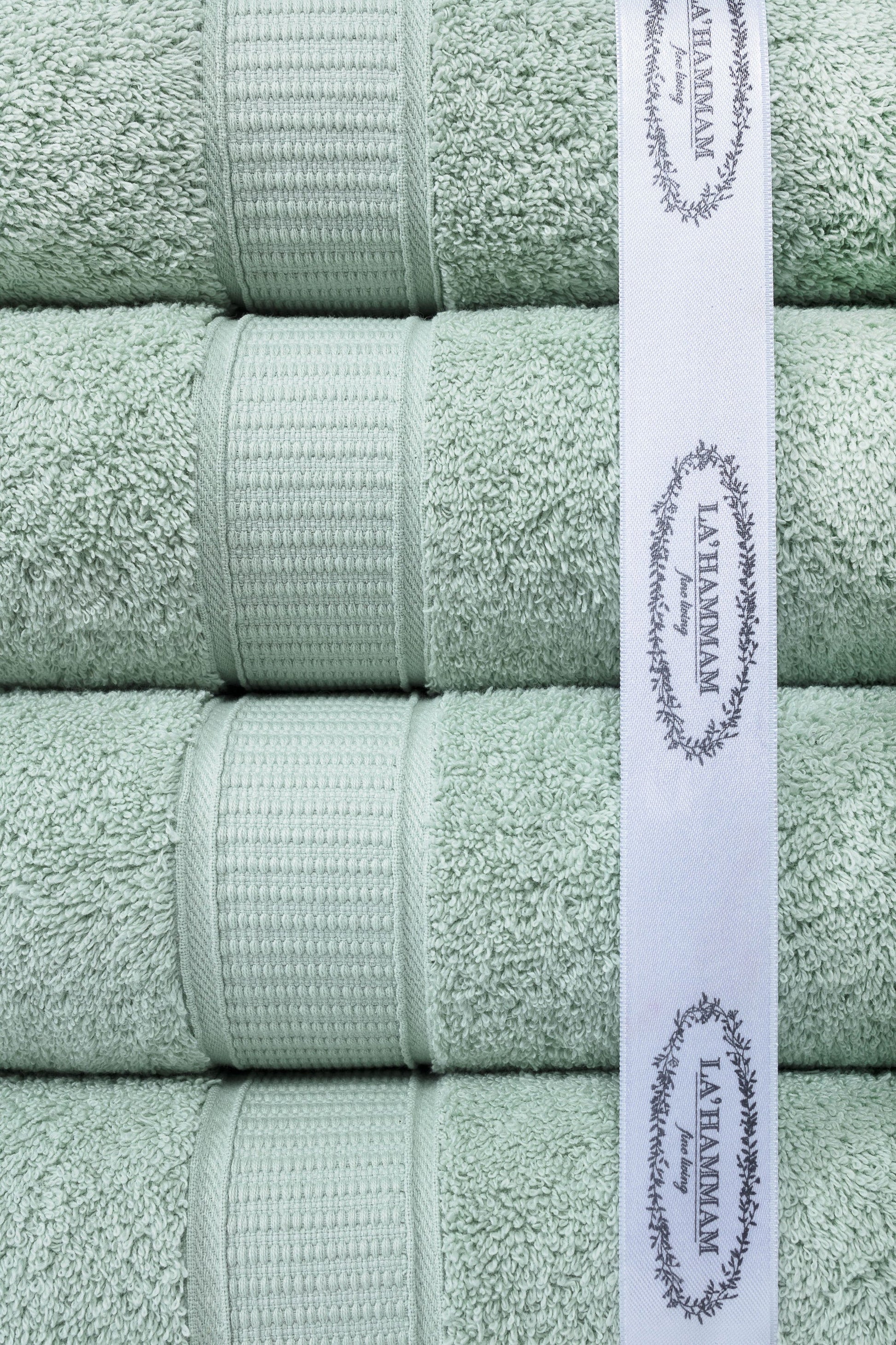 La Hammam's Turkish Cotton Bath Hand Towels are crafted from pure, 100% long-staple Turkish cotton woven to 600 GSM to provide you with the best comfort, absorbency and performance. The result is luxurious softness that outperforms others, of thick and dense cotton, with the feeling, absorbance, and softness of the legendary Turkish Towels that only gets softer after each wash.