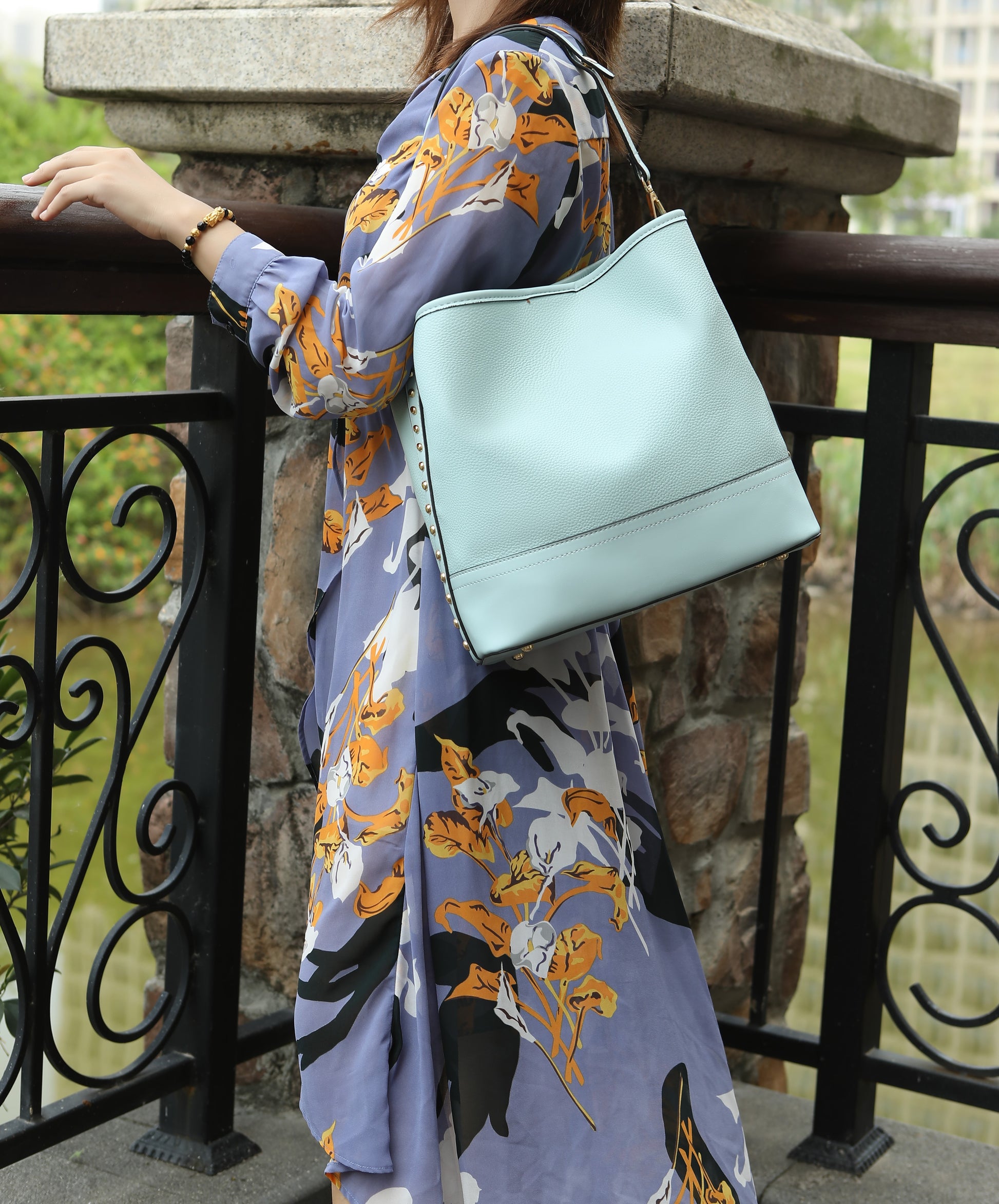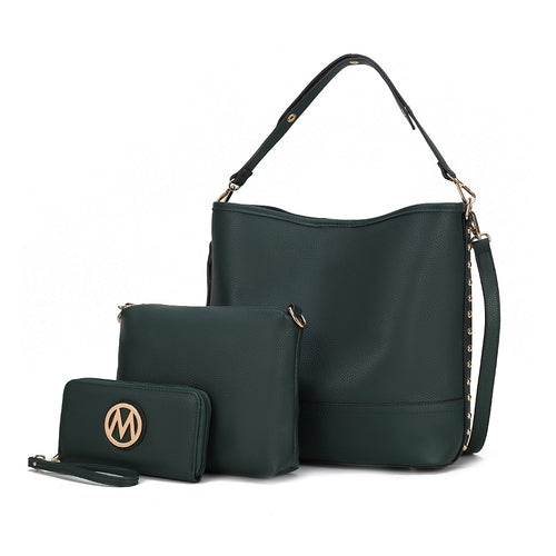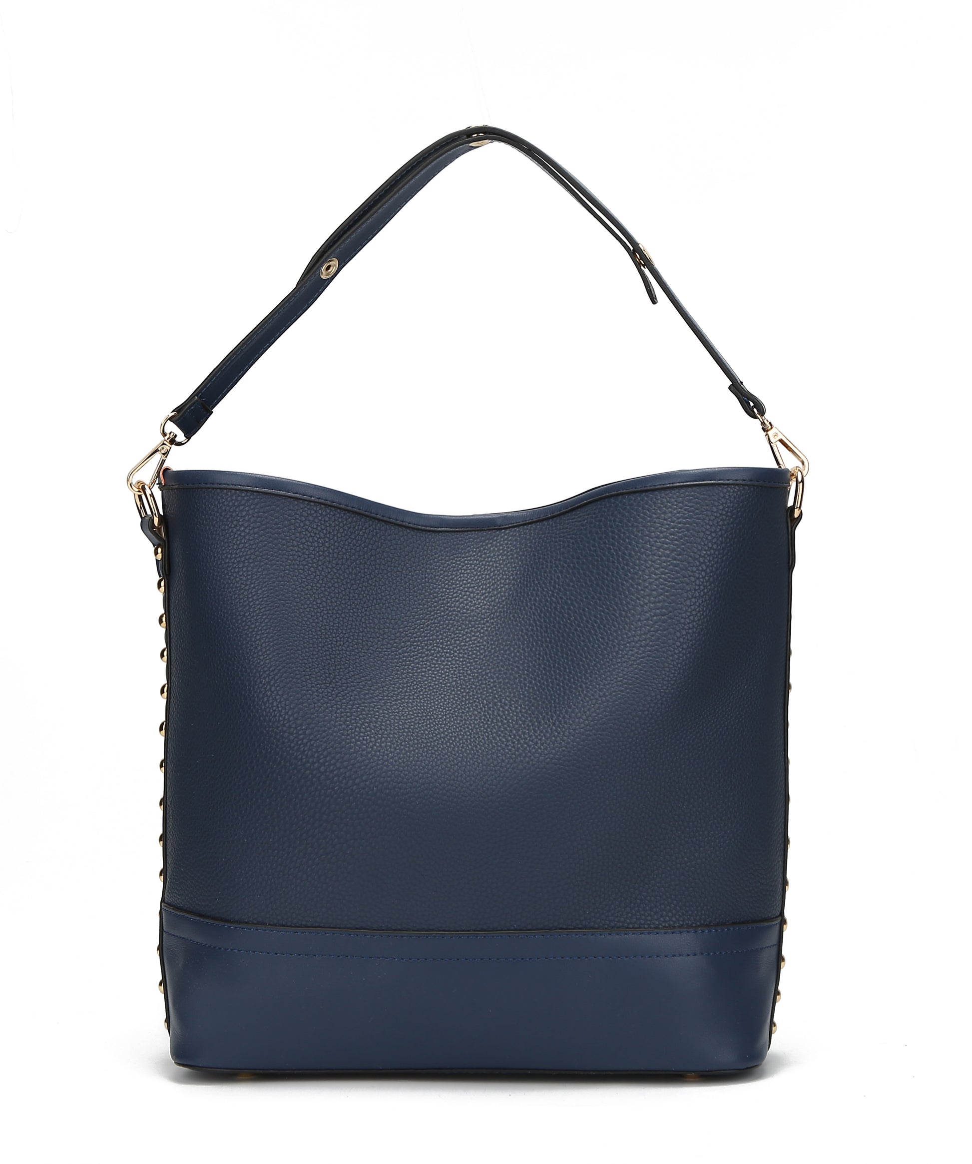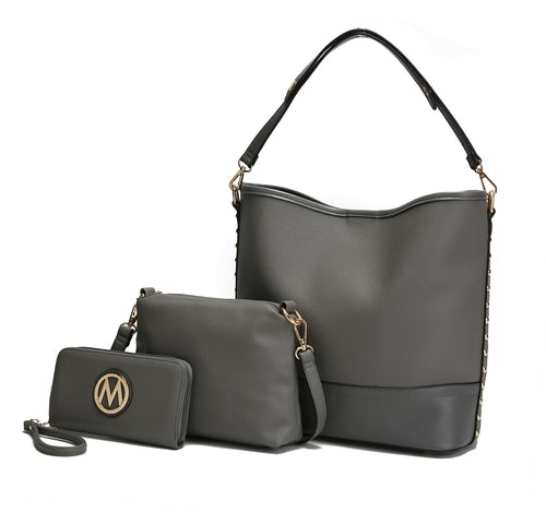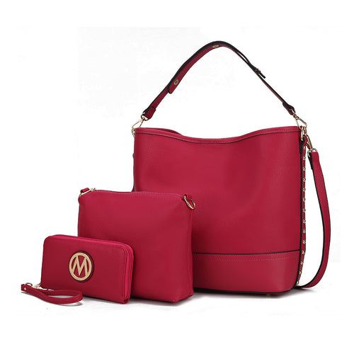 - The interior features a spacious compartment including a pouch that can be used as a crossbody bag and wallet