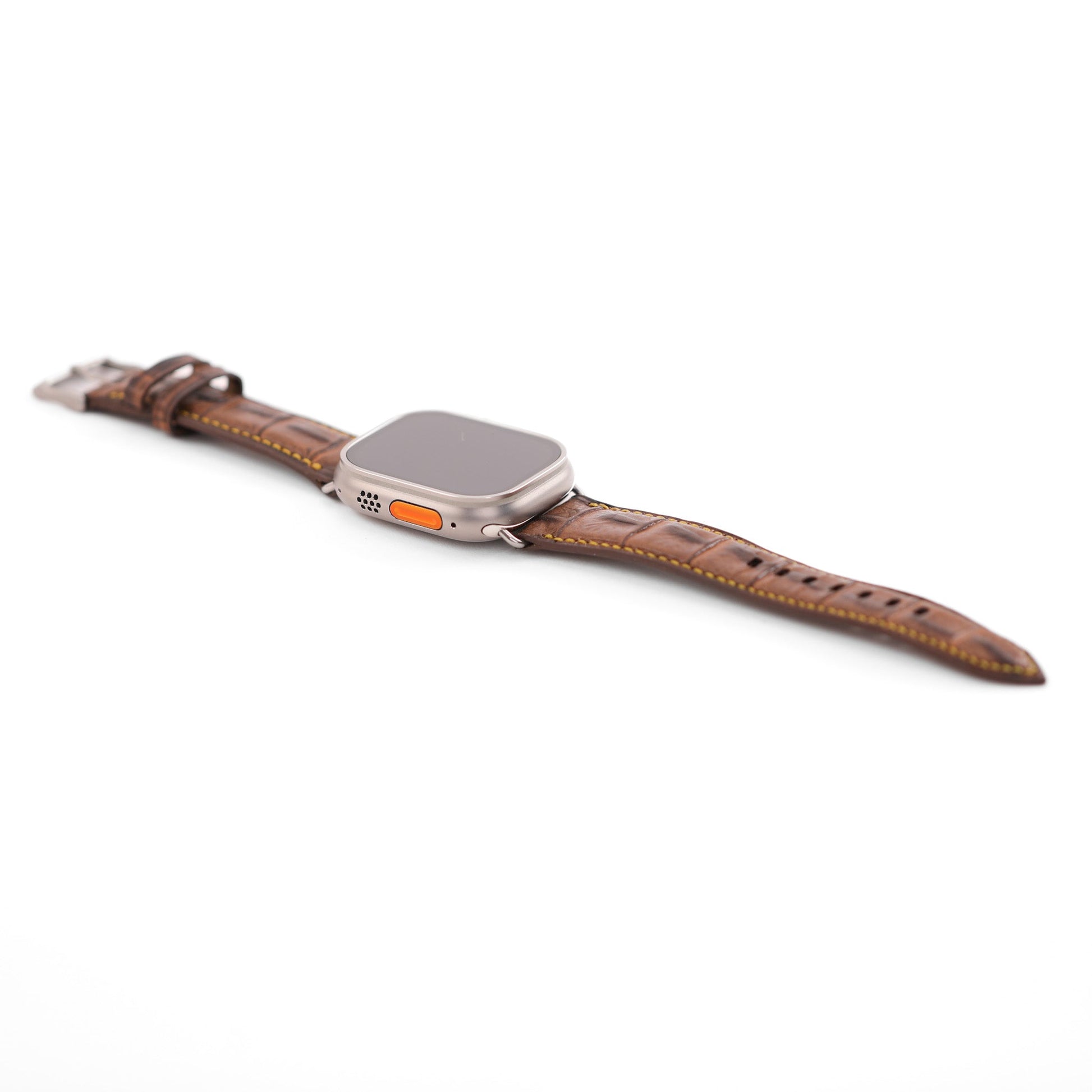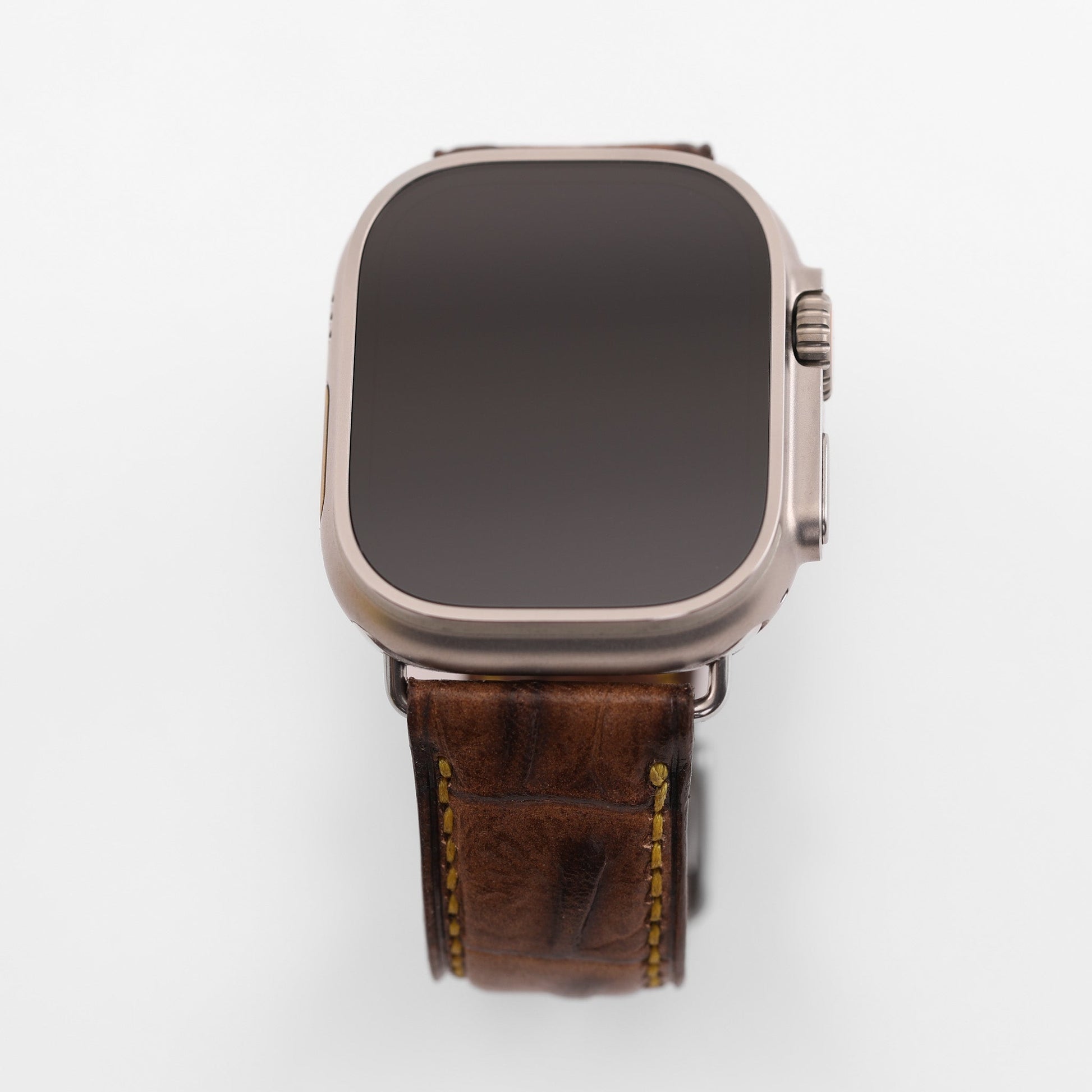 This new apple watch ultra watch band is meticulously handcrafted and handsewn with genuine full grain leather then paired with heavy duty hardware --this fresh design and unique leather will age beautifully and last a lifetime. We also burnish, skive, sand, and edge coat each band for that high quality premium finish.