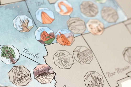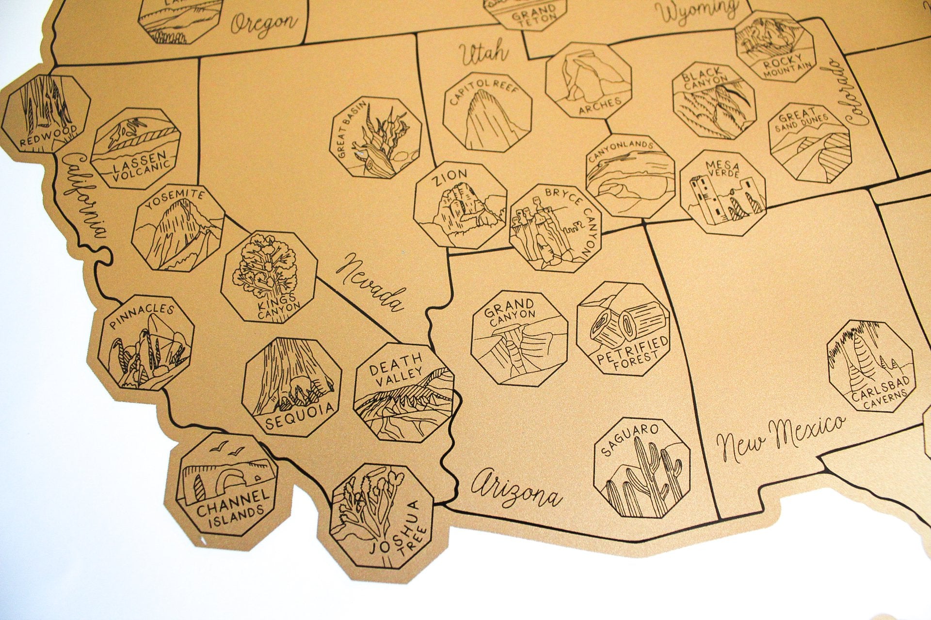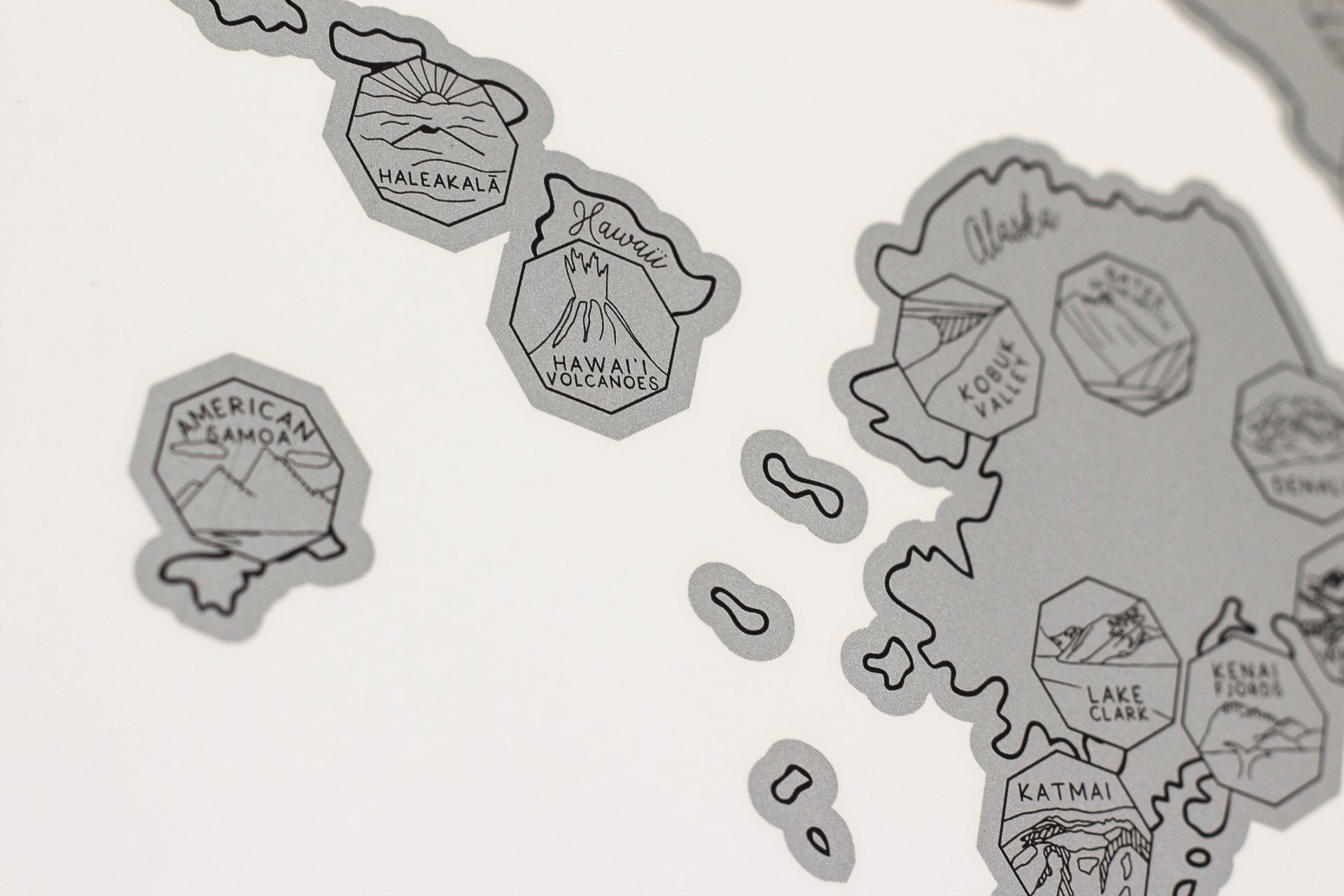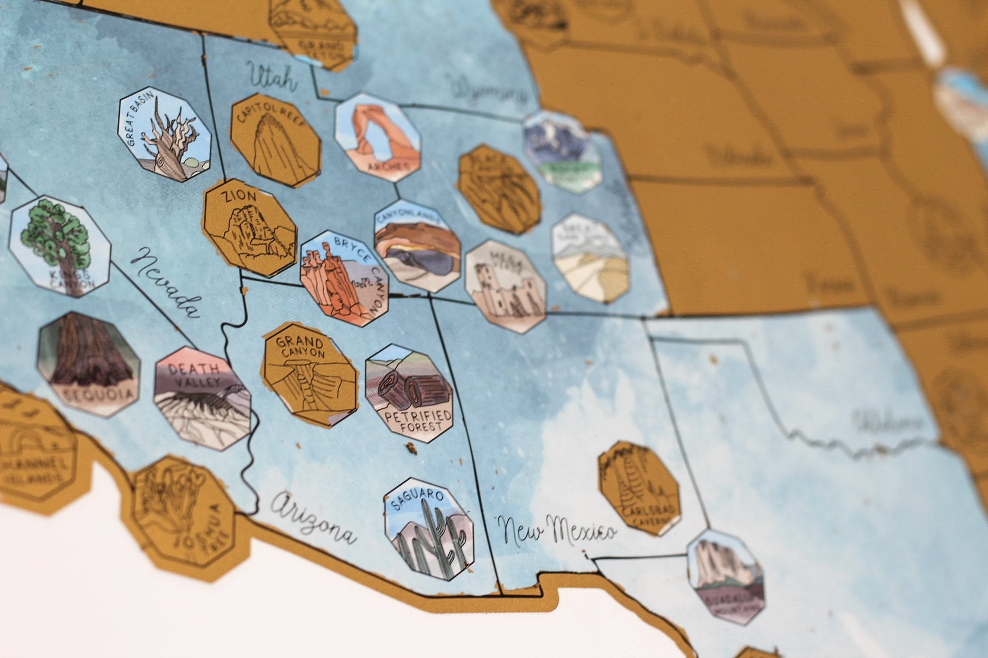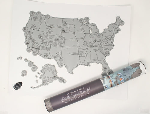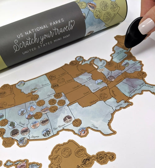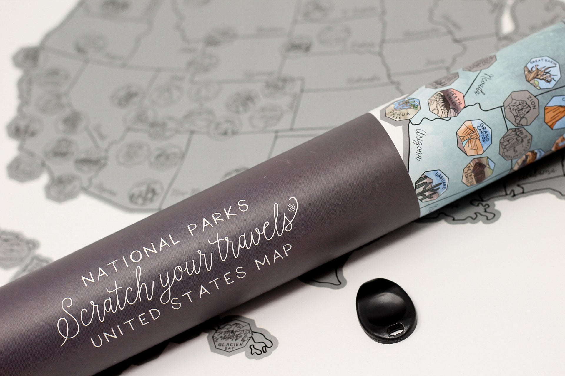 Includes 61 National Parks (including Indiana Dunes National Park that was added in early 2019). Each park is hard-drawn and shaped like a hexagon, making it easy to scratch more precisely. To use, simply use the included tool to scratch off the foil over states and national parks you've visited.