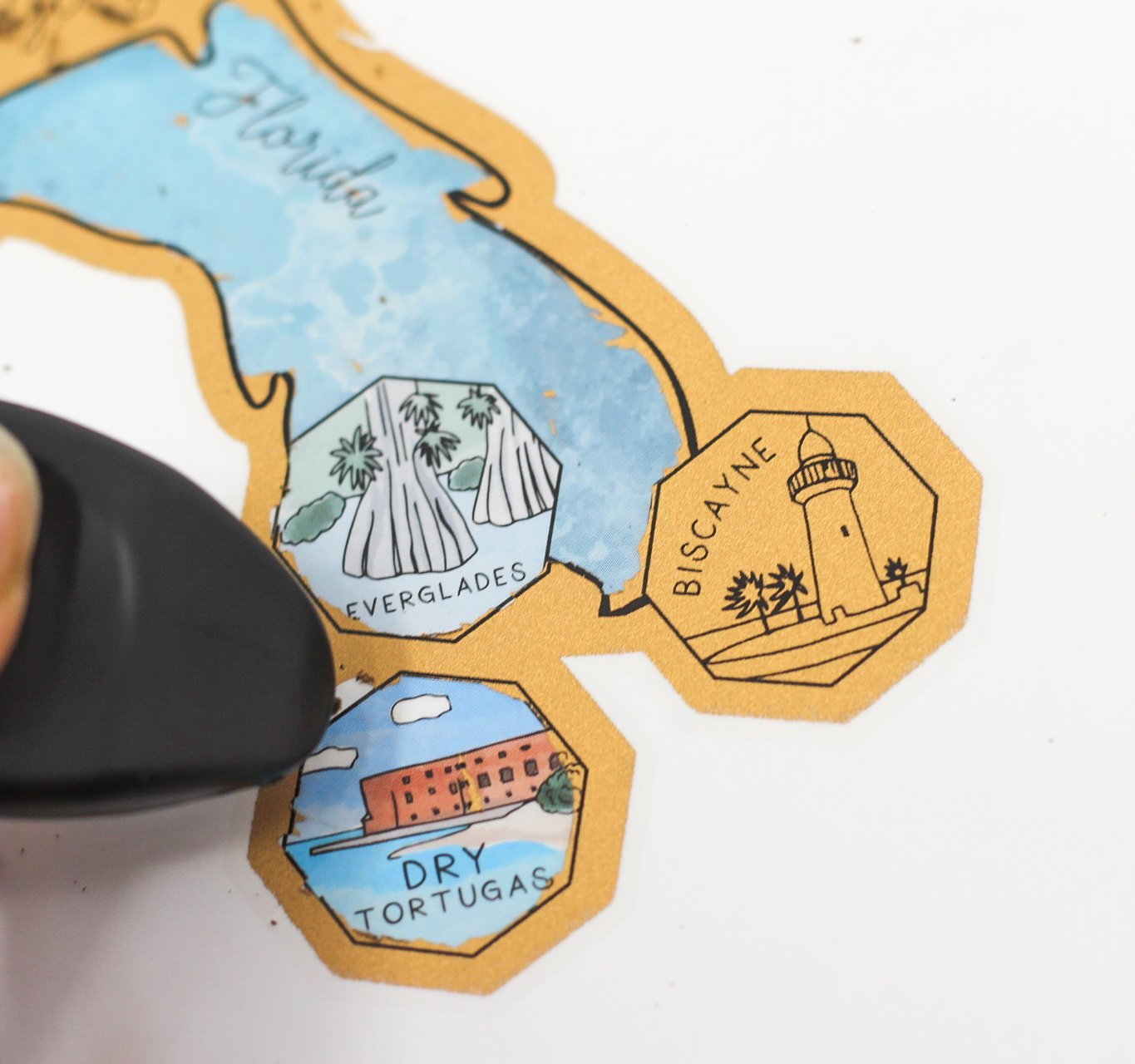 - Includes a scratching tool specifically designed for removing foil off my maps.