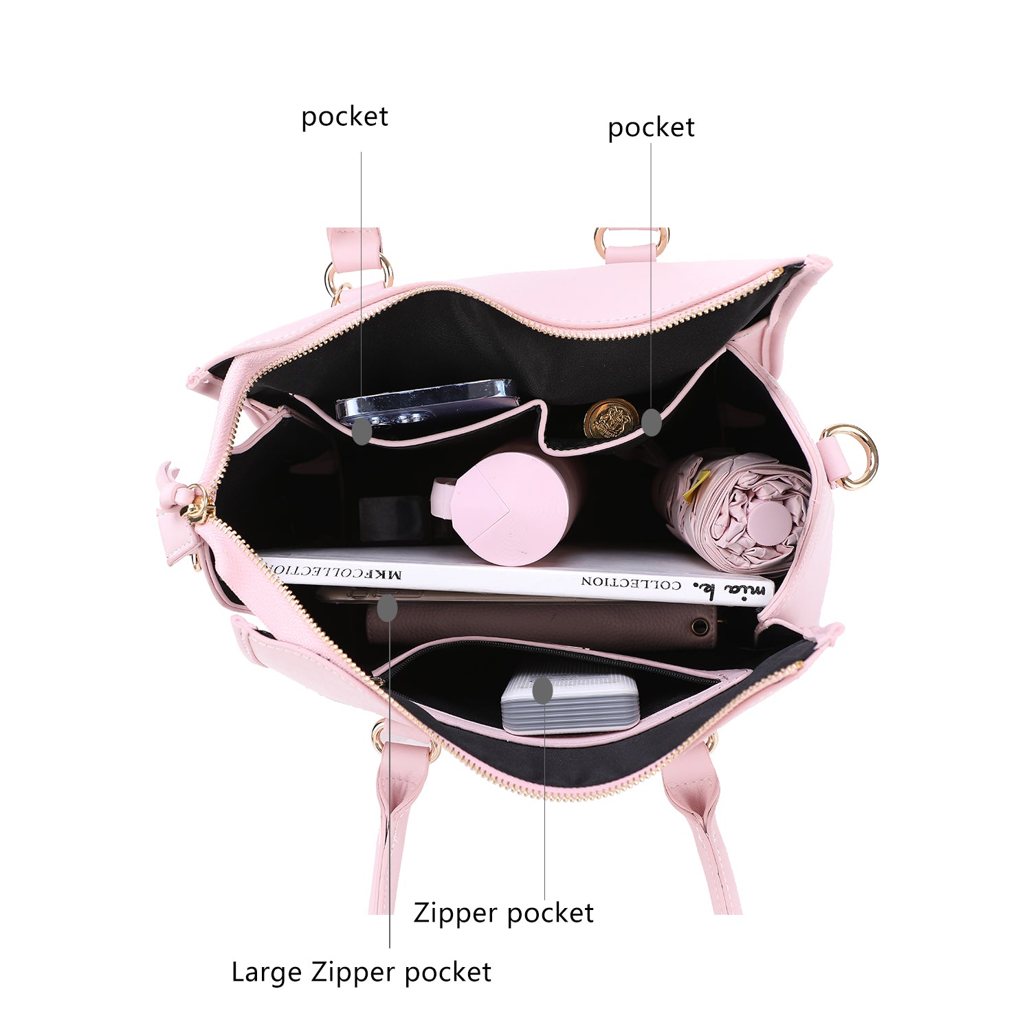- POCKETS: 1 exterior zipper pocket, 2 interior pockets, 1 interior zipper pocket with our signature Mia K. Collection Plate.
