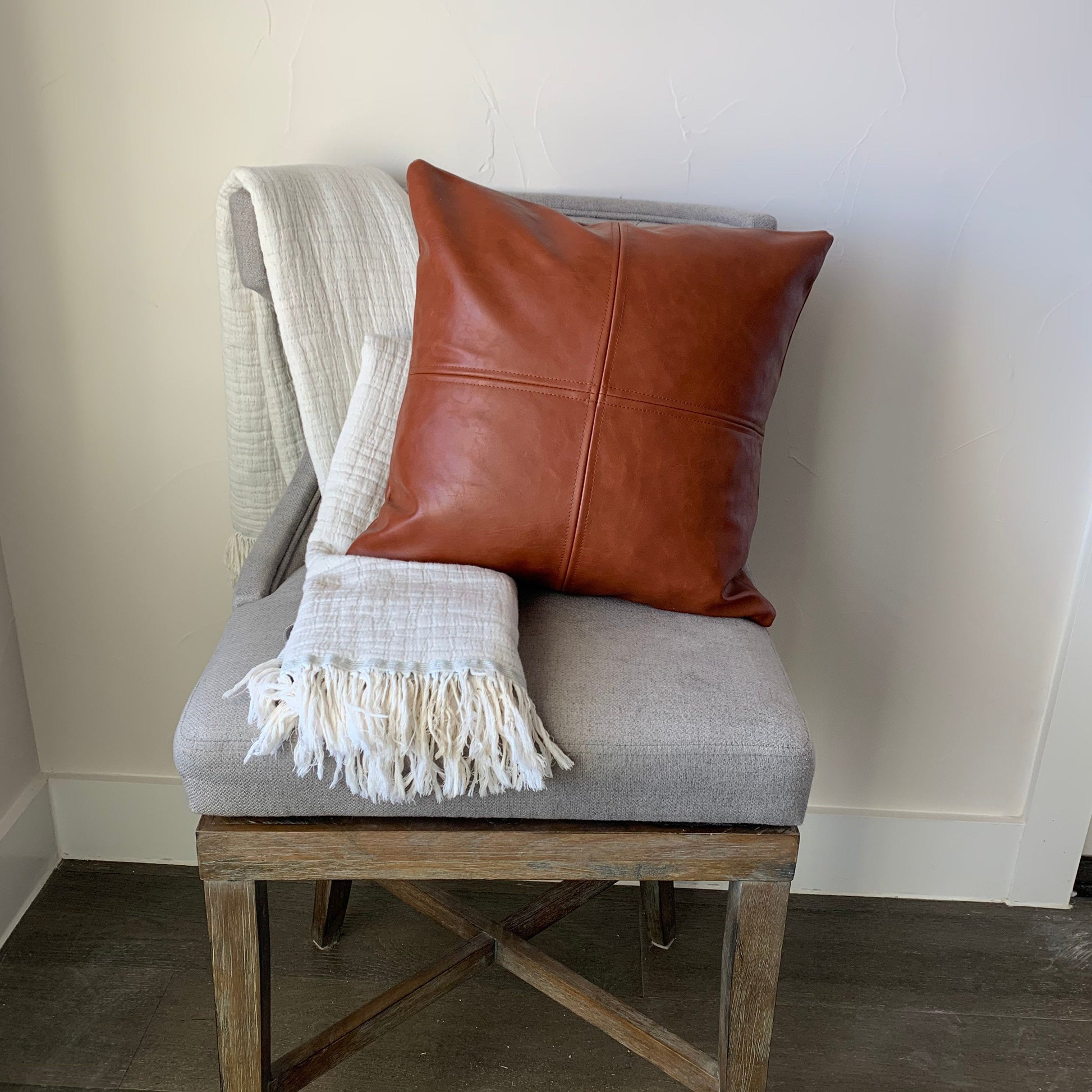 Vegan Leather Pillow Cover, Faux leather throw pillow cover