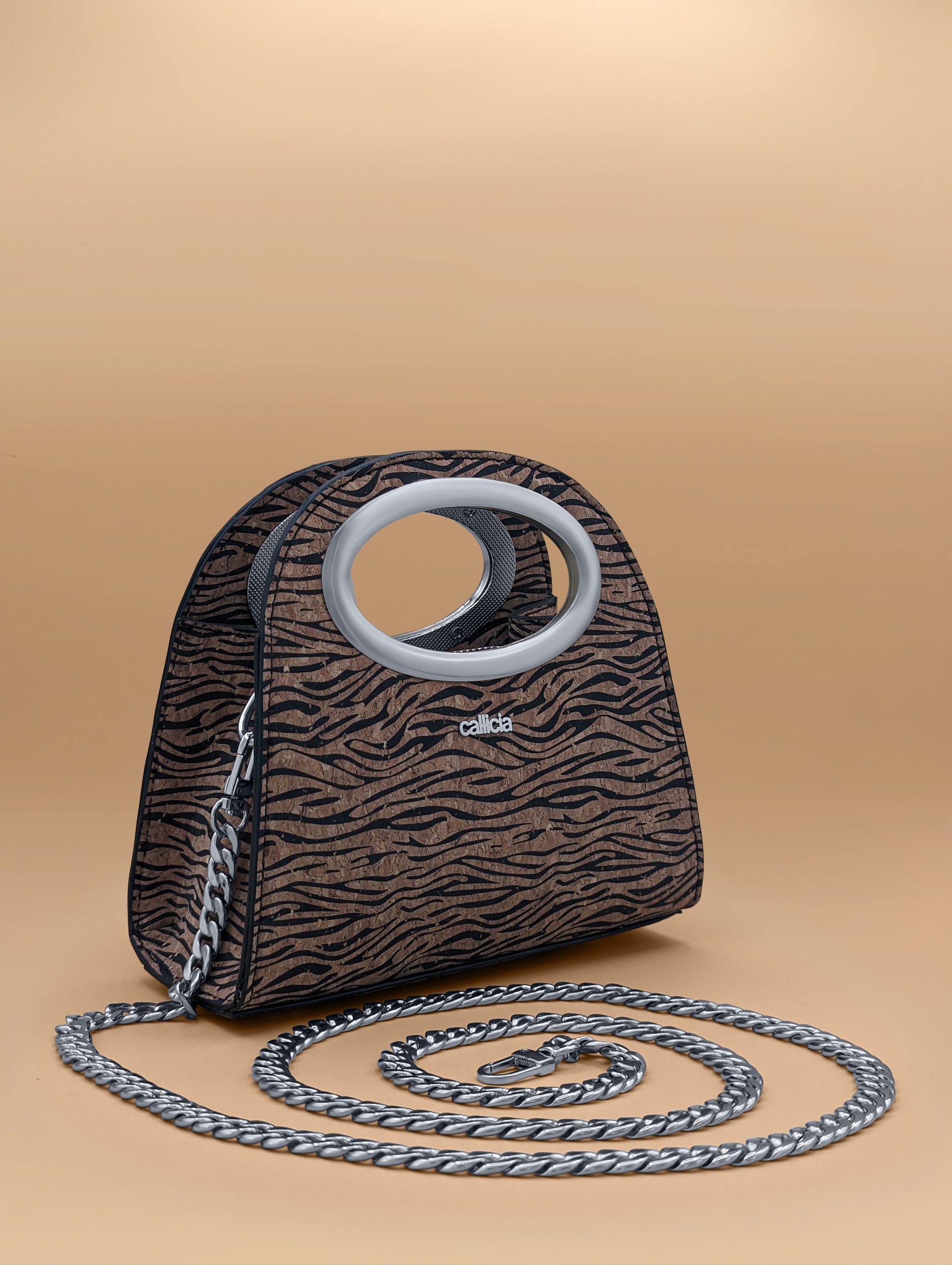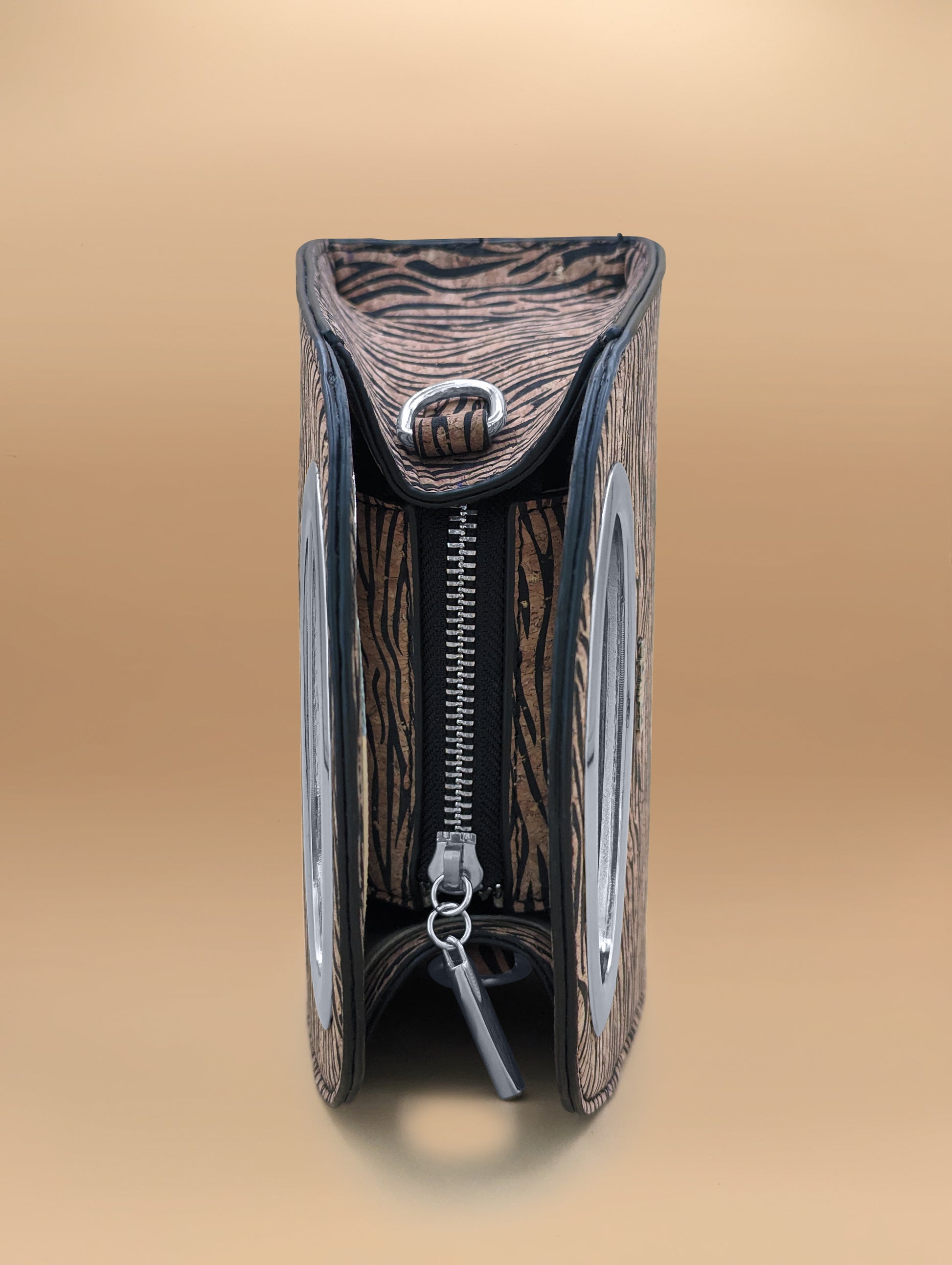 Step into the wild side of fashion with our zebra print Mini Bag. Crafted from the finest eco-friendly cork, this bag is not only a statement piece but also a testament to sustainable style. Its compact design is perfect for brunch or a night on the town.