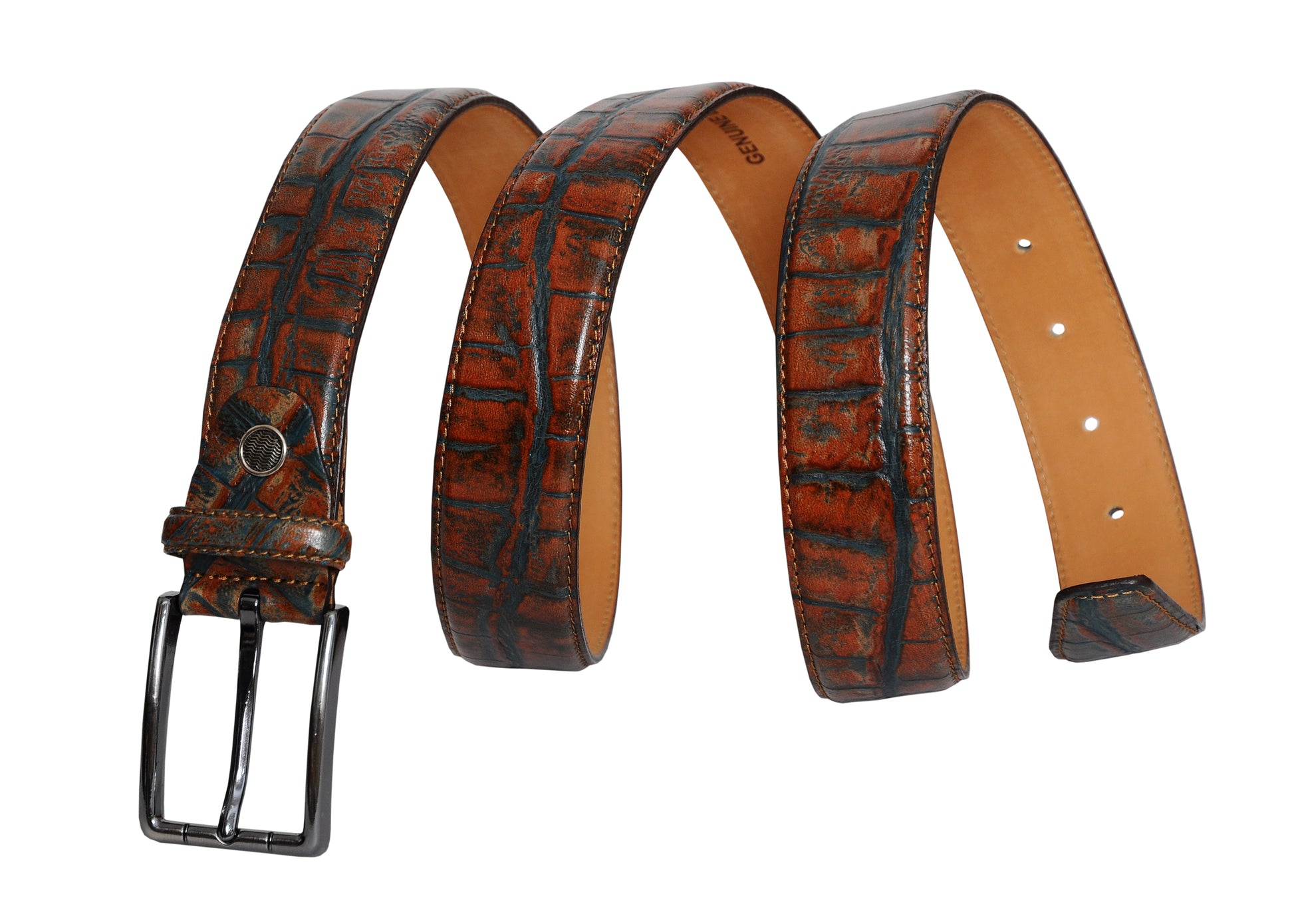 The Vegas Brown Blue Leather Men's Belt is both stylish and functional. It's made with a mix of brown and blue leather that adds a unique touch to any outfit. With a silver nickel free buckle for easy fastening, this belt is perfect for anyone looking to add some color and comfort to their wardrobe.