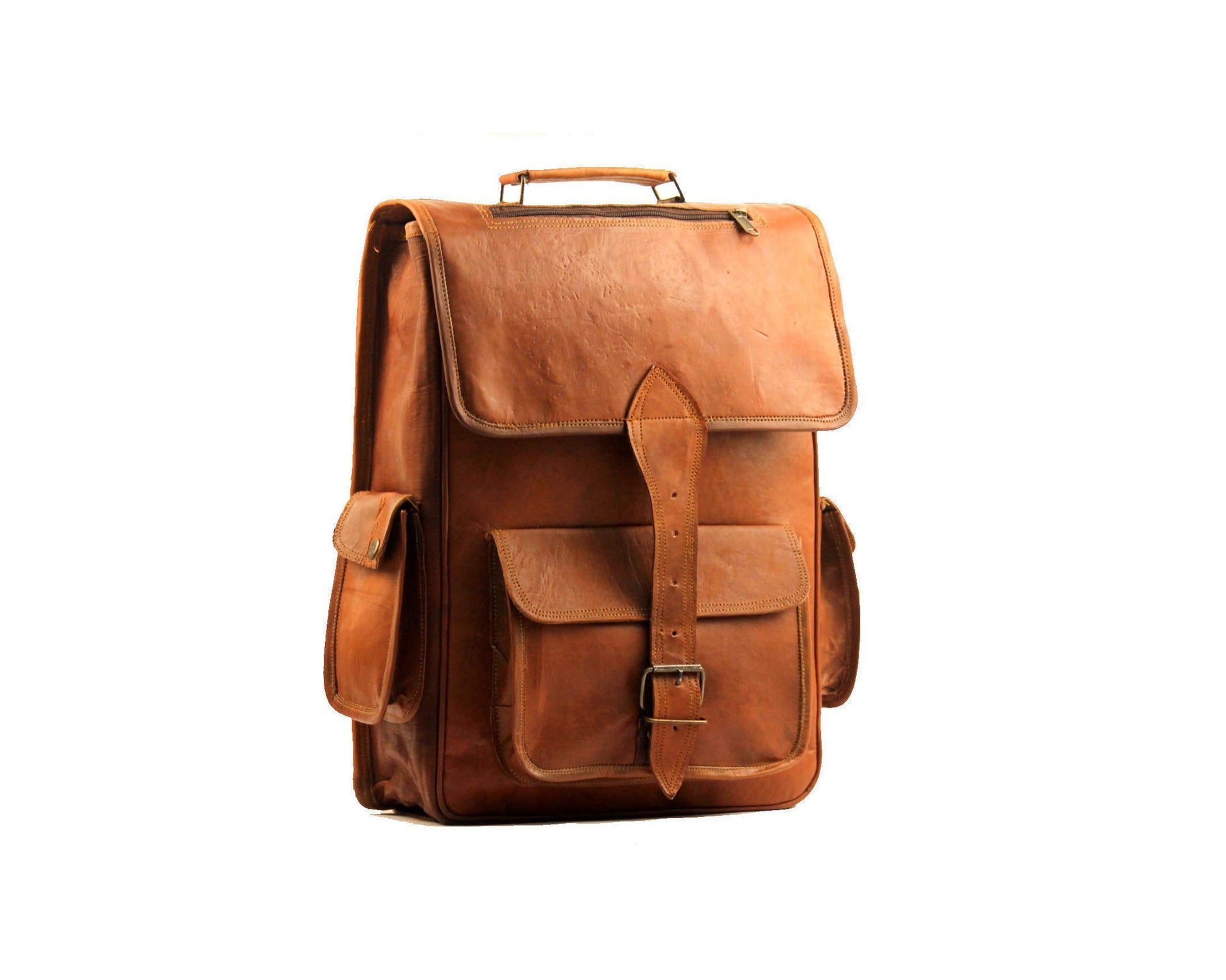 - Stronger Rucksack That's Dressed in Brown Vintage Leather that gives it an added touch of the wild west