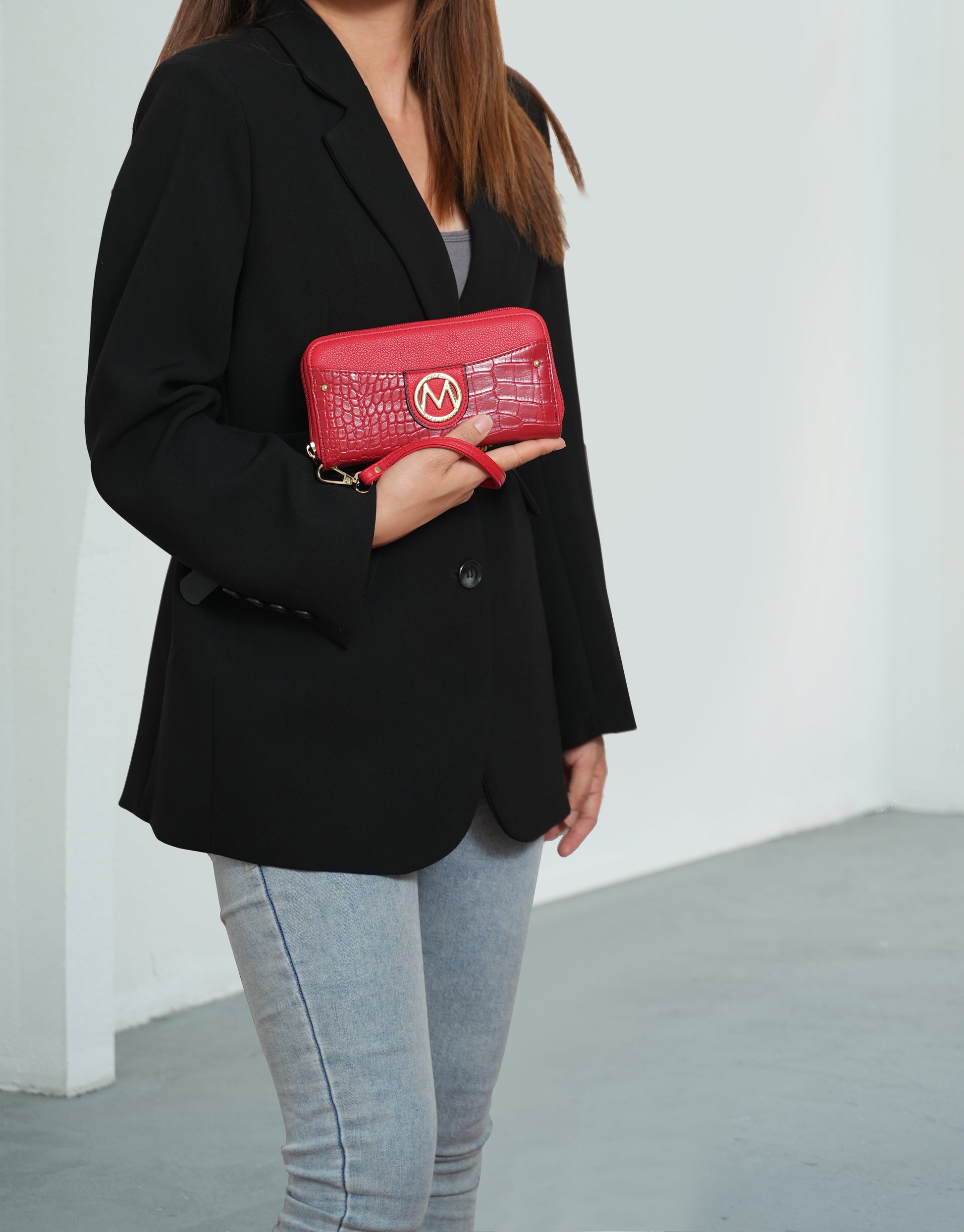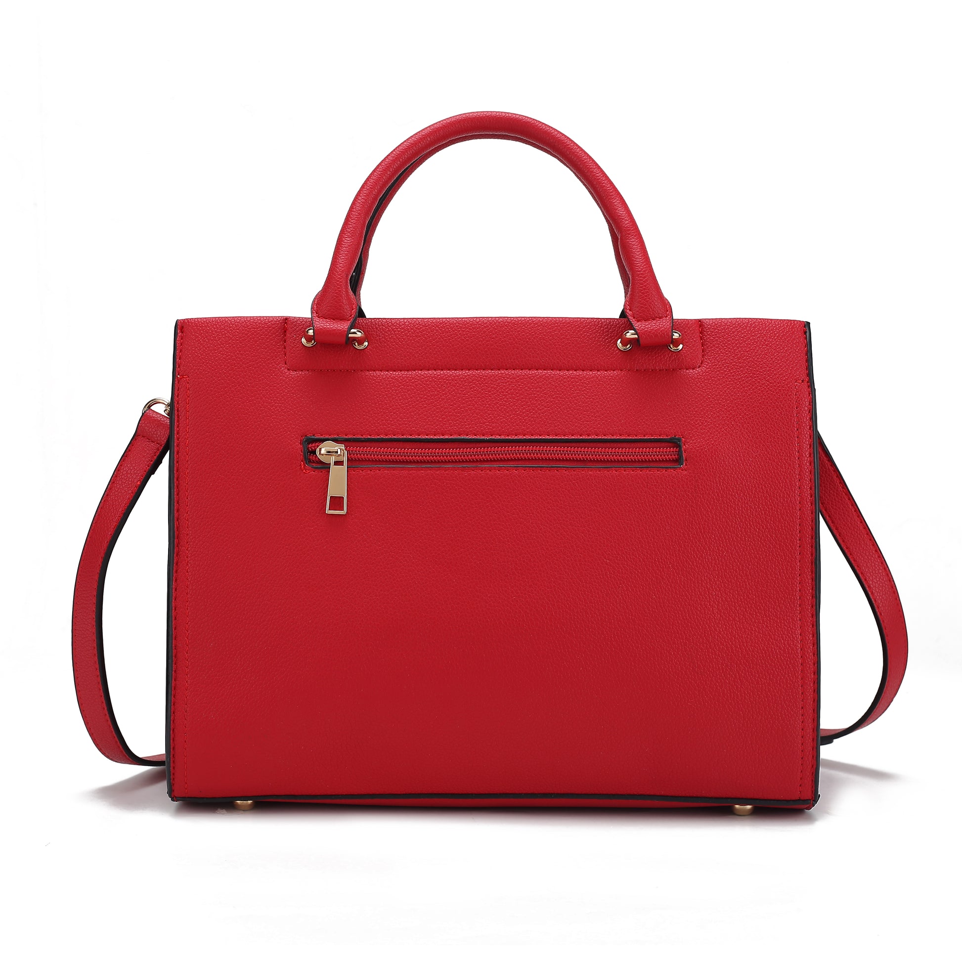 - Compact yet practical, our Virginia tote Bag is the ideal daily companion for this season and the next. Crafted from pebbled high-quality vegan leather with matching luxurious crocodile-embossed vegan leather to make a luxe statement. Open the top zipper closure to reveal a fully lined interior with two slip pockets and a wall zip pocket. The exterior features a back zippered pocket, perfect to keep all your small items easy to reach. The front features a decorative belt with gold-tone hardware. Attach the adjustable strap to wear it crossbody for busy days that require on-the-go ease. This style has a flat base and feet for stability. It comes with a matching wallet. The Virginia Tote is both practical and polished.