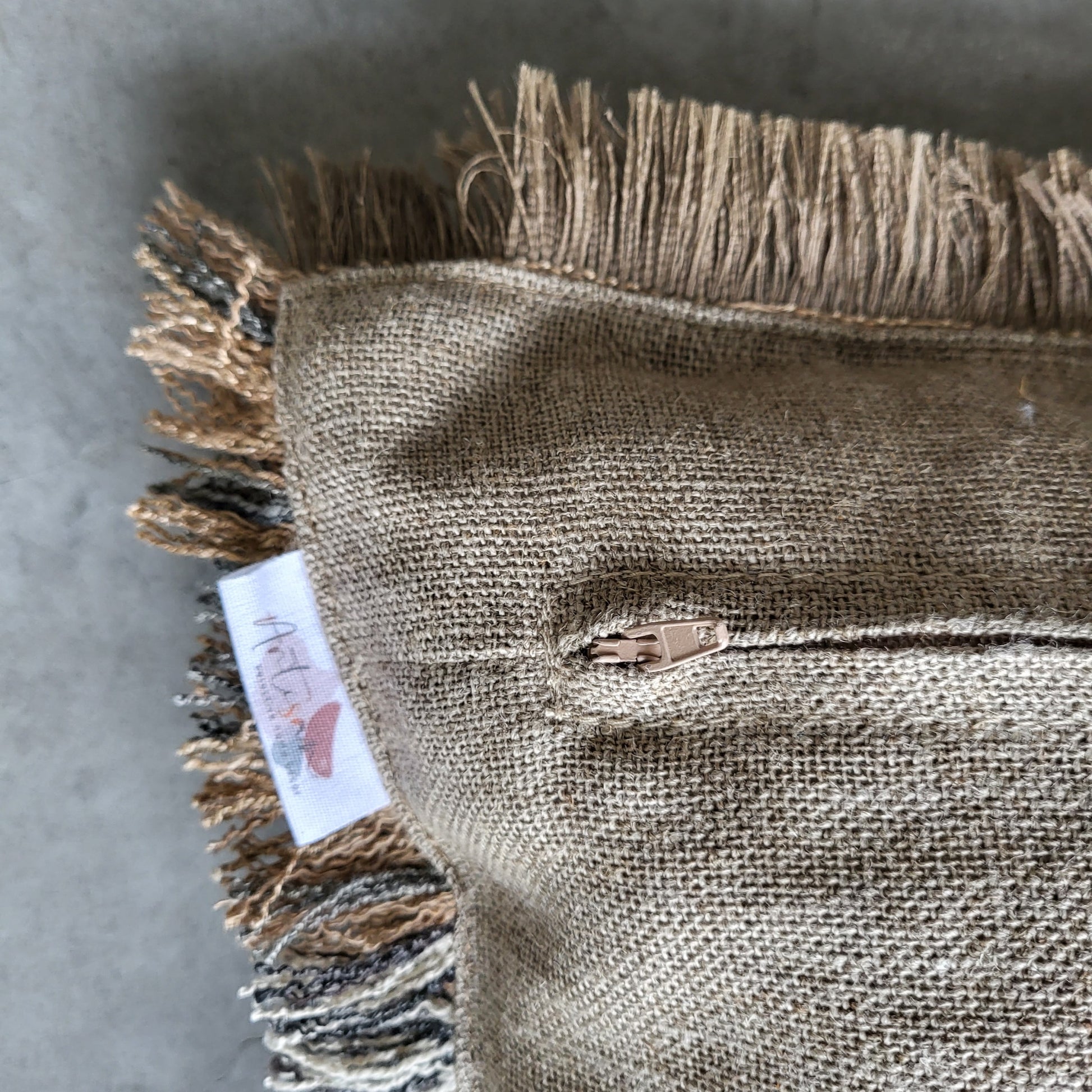 • Front is a combination of Linen and Cotton and PI. Back of Portuguese Linen Cru.• Closure Zipper