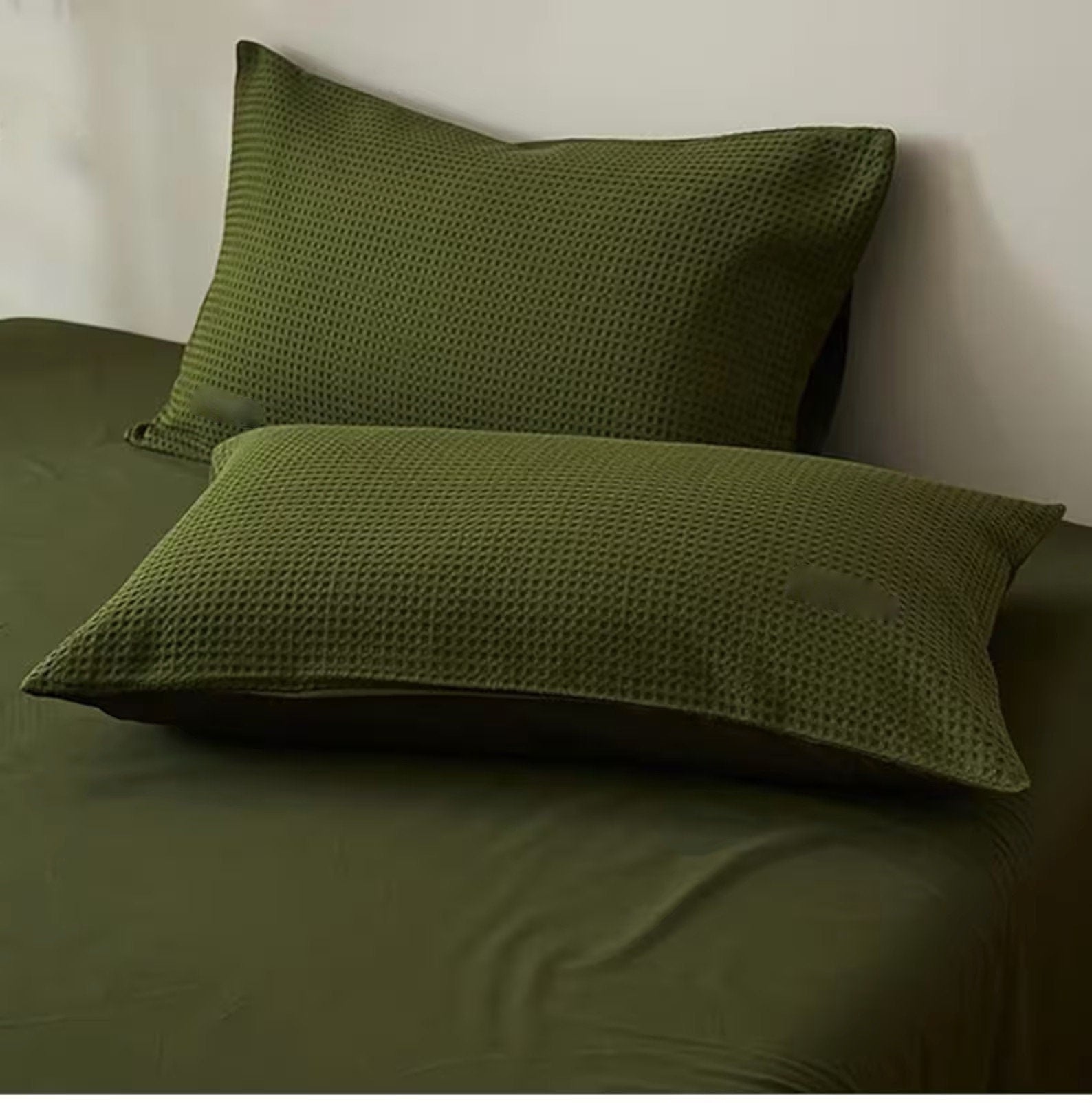 - This set features a timeless waffle texture in classic solid colors, which adds a relaxed yet elevated look to your year-round bedding.