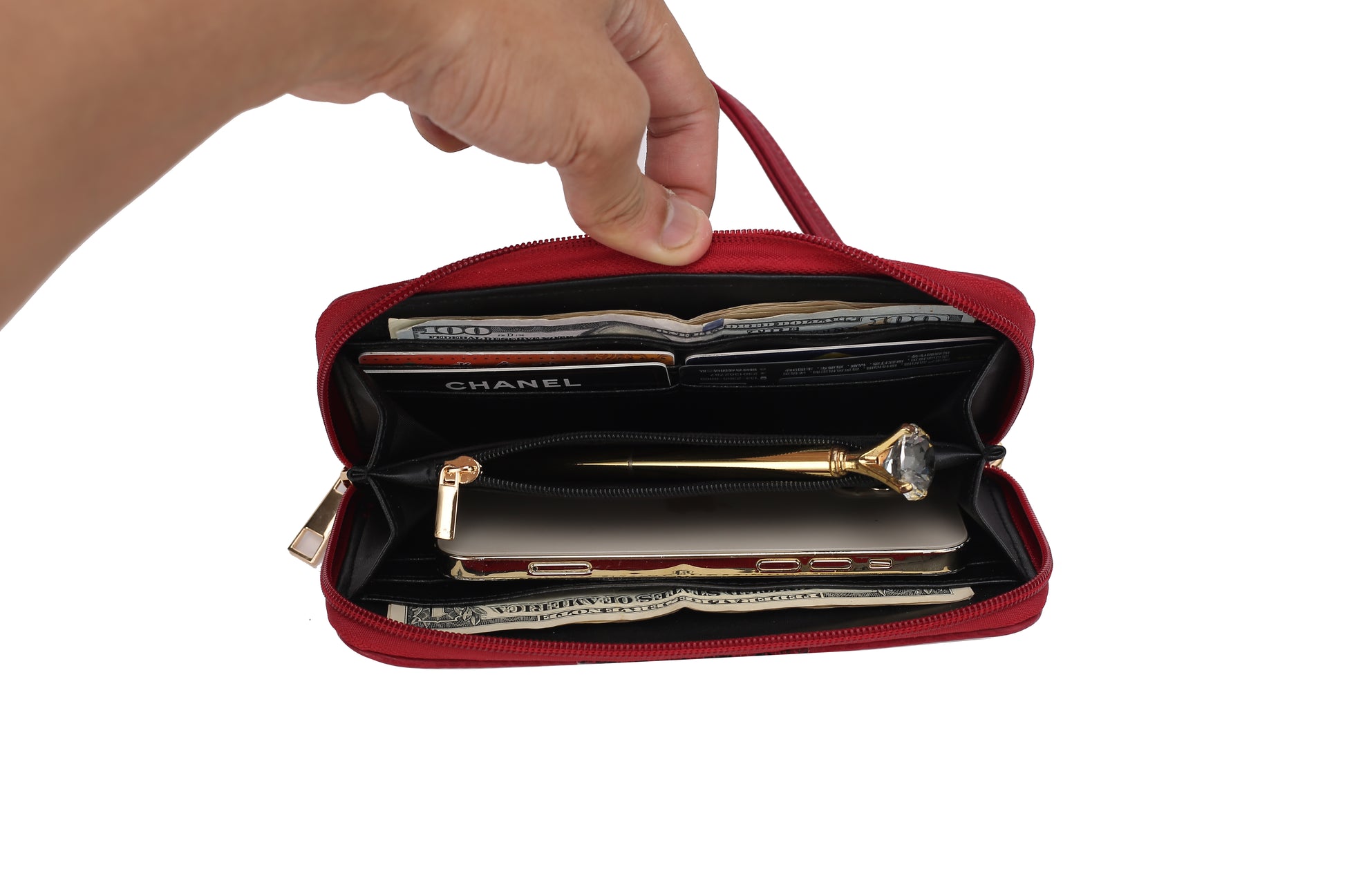 - 1 center zip pocket, 8 card slots, 2 slip pockets, zip fastening.